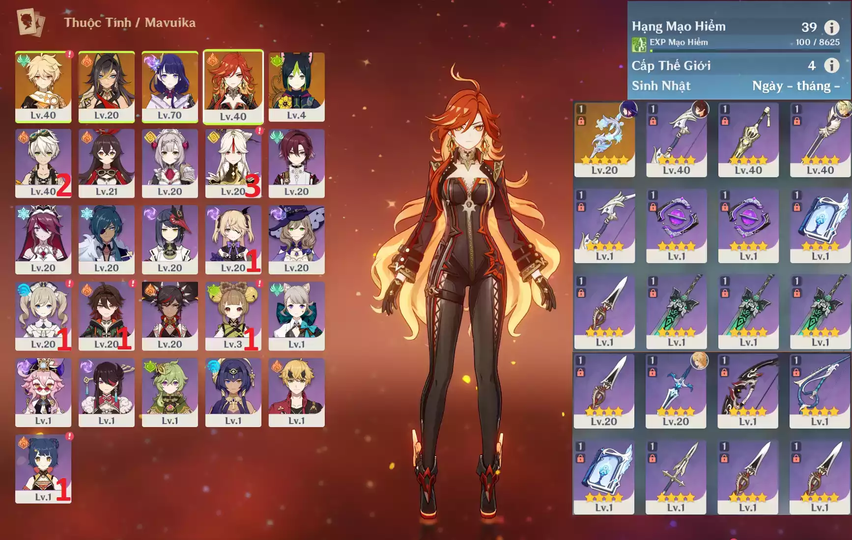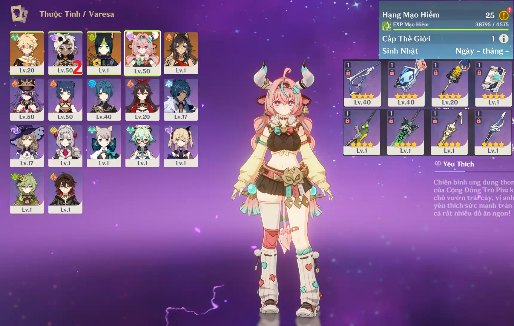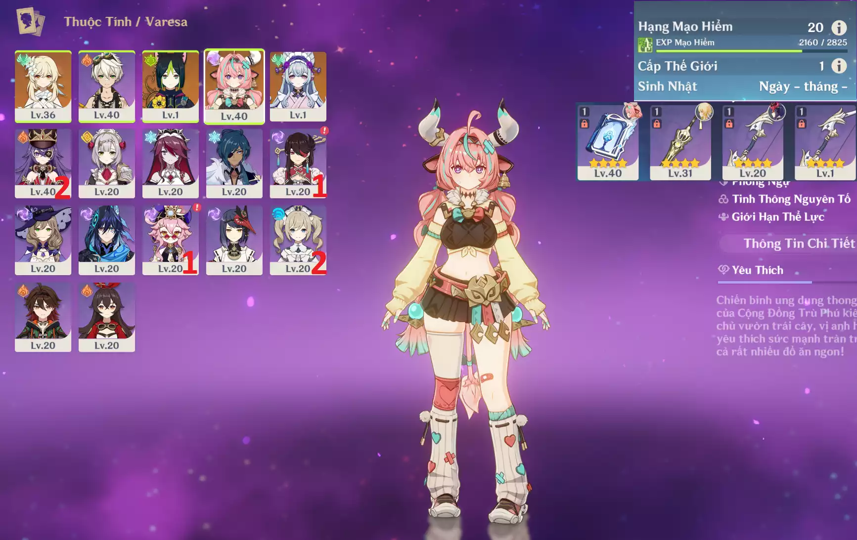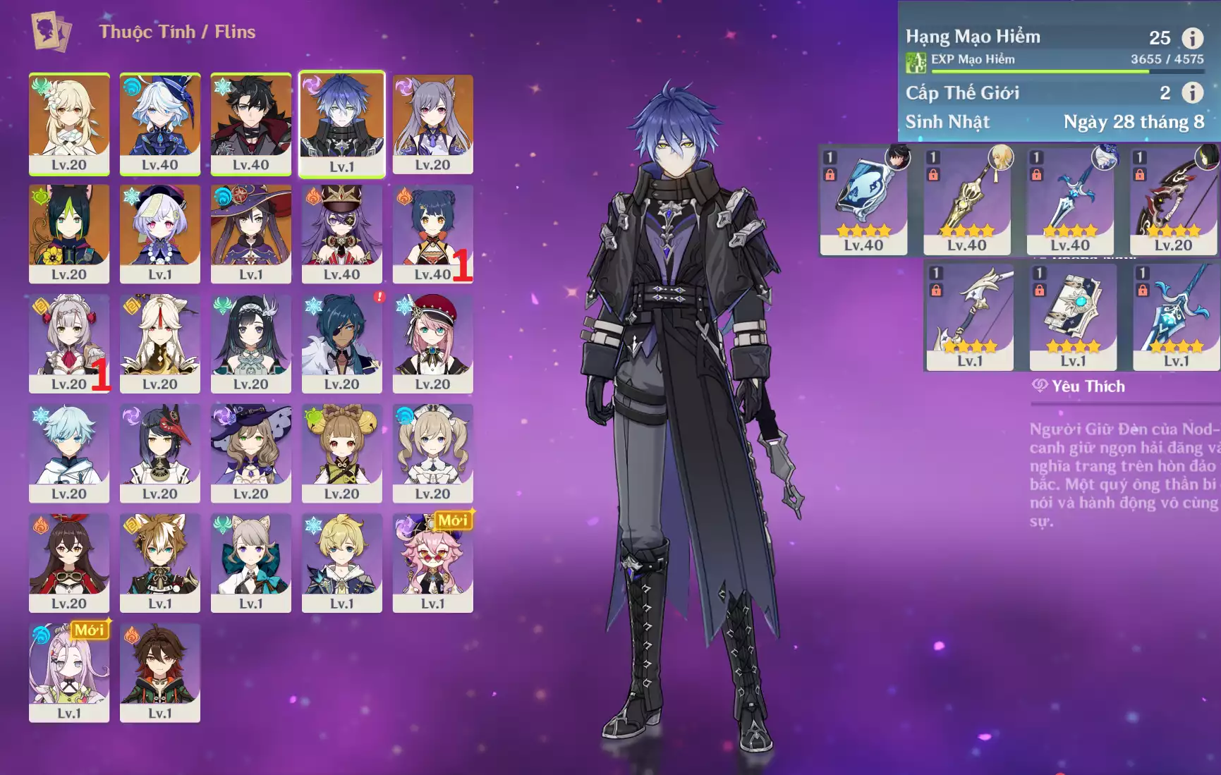 Ar25 : Flins + Nahida + Zhongli + Yelan + TighnariC2 + Jean_ bennet xianglingC1 _ banner nhân vật 15/90 ( acc trắng thông tin _ chưa set mail + sinh nhật ) _ map + nhiệm vụ zin 99,99%