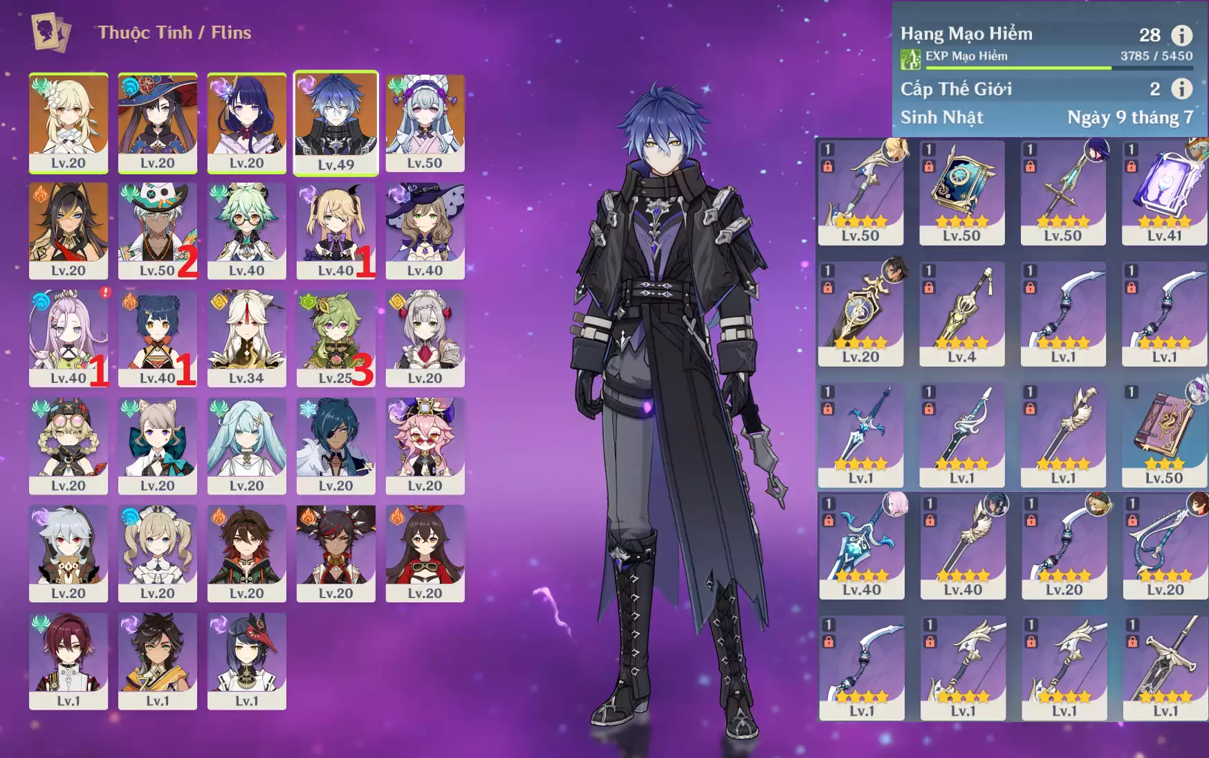 #359698 1,000,000đ 1,000,000đ AR level 8 Khu Vực asia Tướng 5* 2 VIP Ar8: Combo ngon Columbina + Flins main NAM , banner vũ khí 9 trang, chưa set user _ chưa set sinh nhật Tướng : 2 Vũ khí : 0 Chi tiết