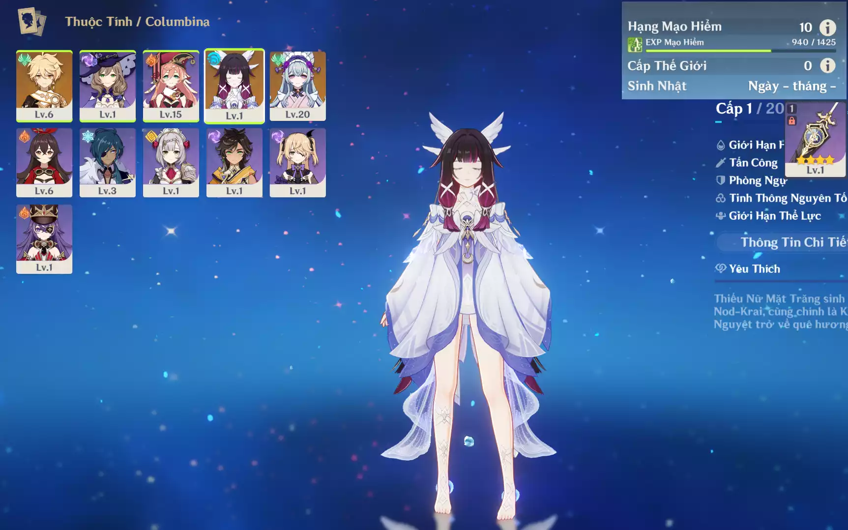#359588 550,000đ 550,000đ AR level 10 Khu Vực asia Tướng 5* 2 Ar10 : Nguyệt thần Columbina + Mizuki _ banner nhân vật 1 trang ( chưa set user + sinh nhật ) Tướng : 2 Vũ khí : 0 Chi tiết
