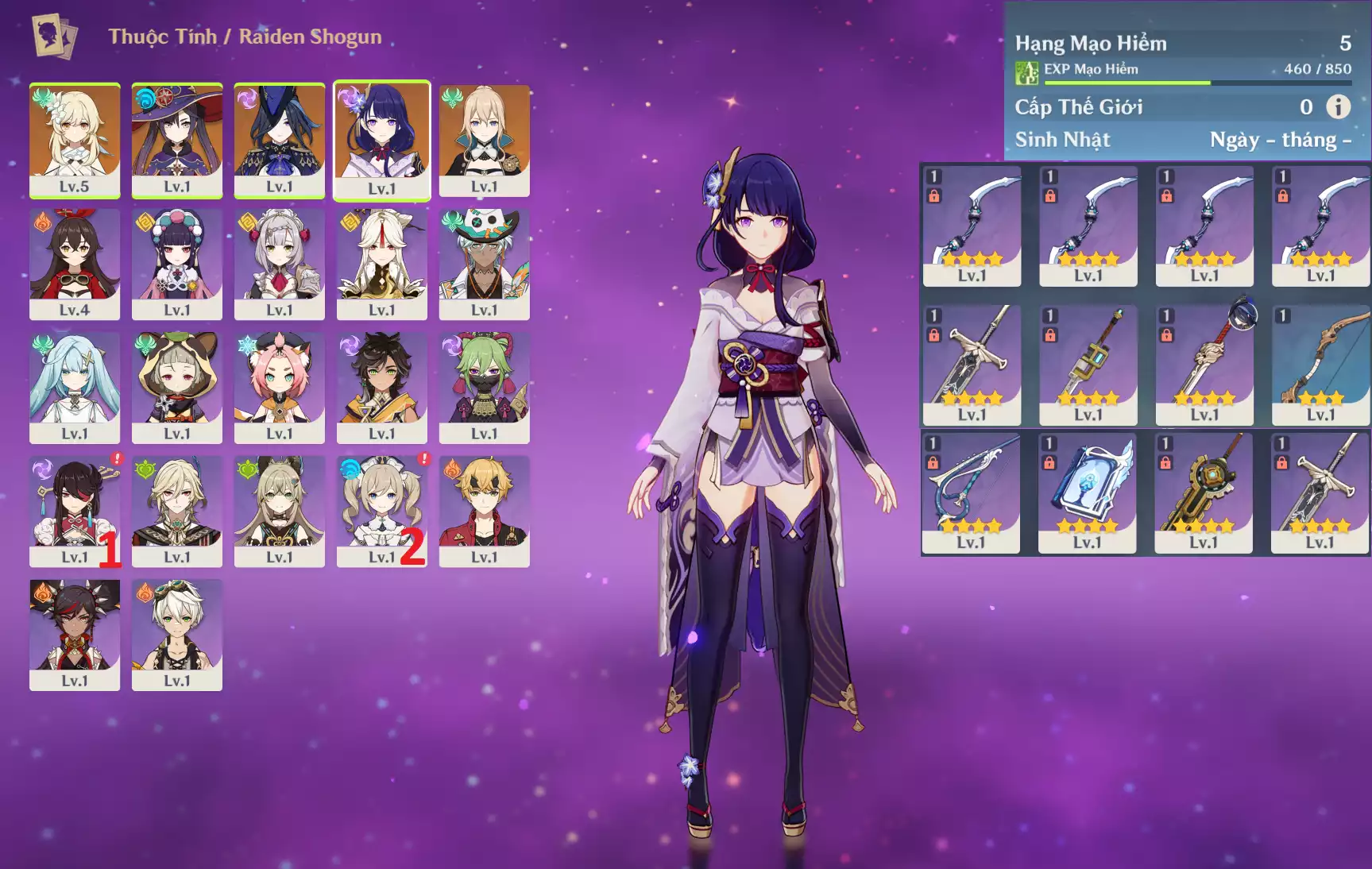 #359572 699,000đ 699,000đ AR level 5 Khu Vực asia Tướng 5* 4 Ar5 : Clorinde + Raidenshogun-bAAL + Mona + Jean _ banner nhân vật 30/90 ( chưa set user + sinh nhật ) Tướng : 4 Vũ khí : 0 Chi tiết