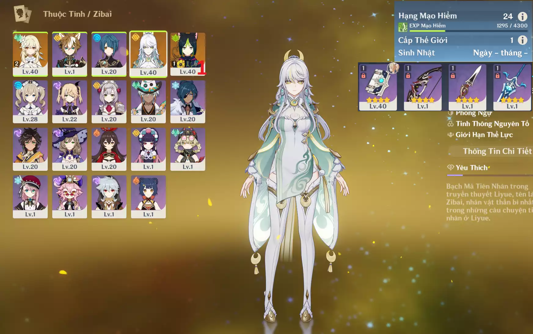 #359583 400,000đ 400,000đ AR level 25 Khu Vực asia Tướng 5* 2 Ar25 : Top1 dps hệ nham Zibai + MonaC1 _ nhân vật 1 trang ( chưa set user + sinh nhật ) - acc tool map nhẹ, ép exp. Tướng : 2 Vũ khí : 0 Chi tiết
