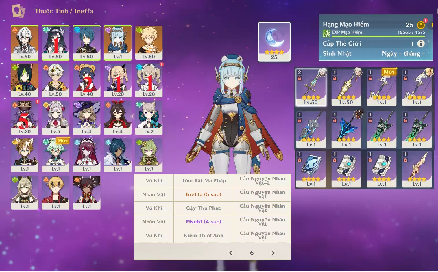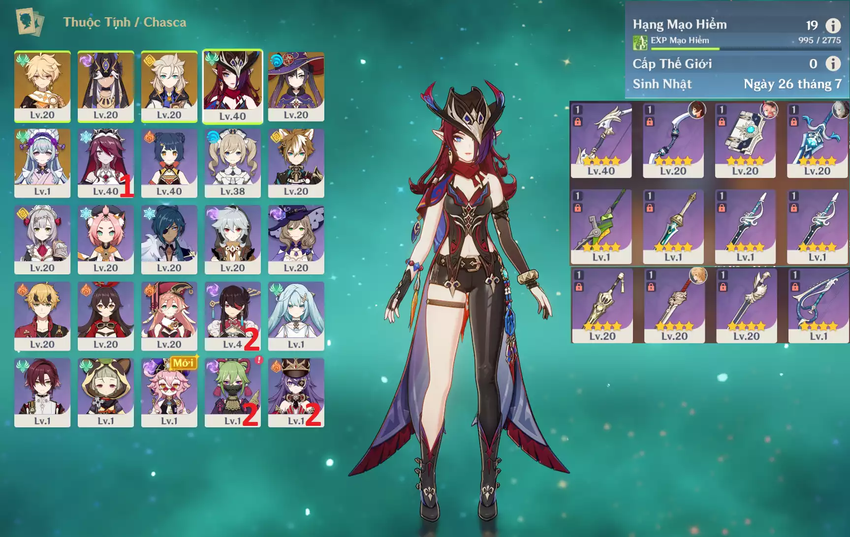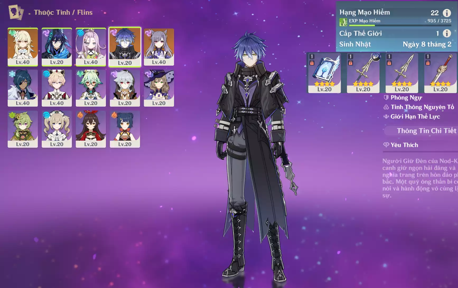 VIP Ar25: Char mới Flins + Wriot trấn QĐVR* + Mavuika + Chasca cung5* + Mizuki Dehya QiQi Keqing bennetC3 main NAM , banner nhân vật ĐÃ LỆCH 5 trang , chưa set user _ chưa set sinh nhật