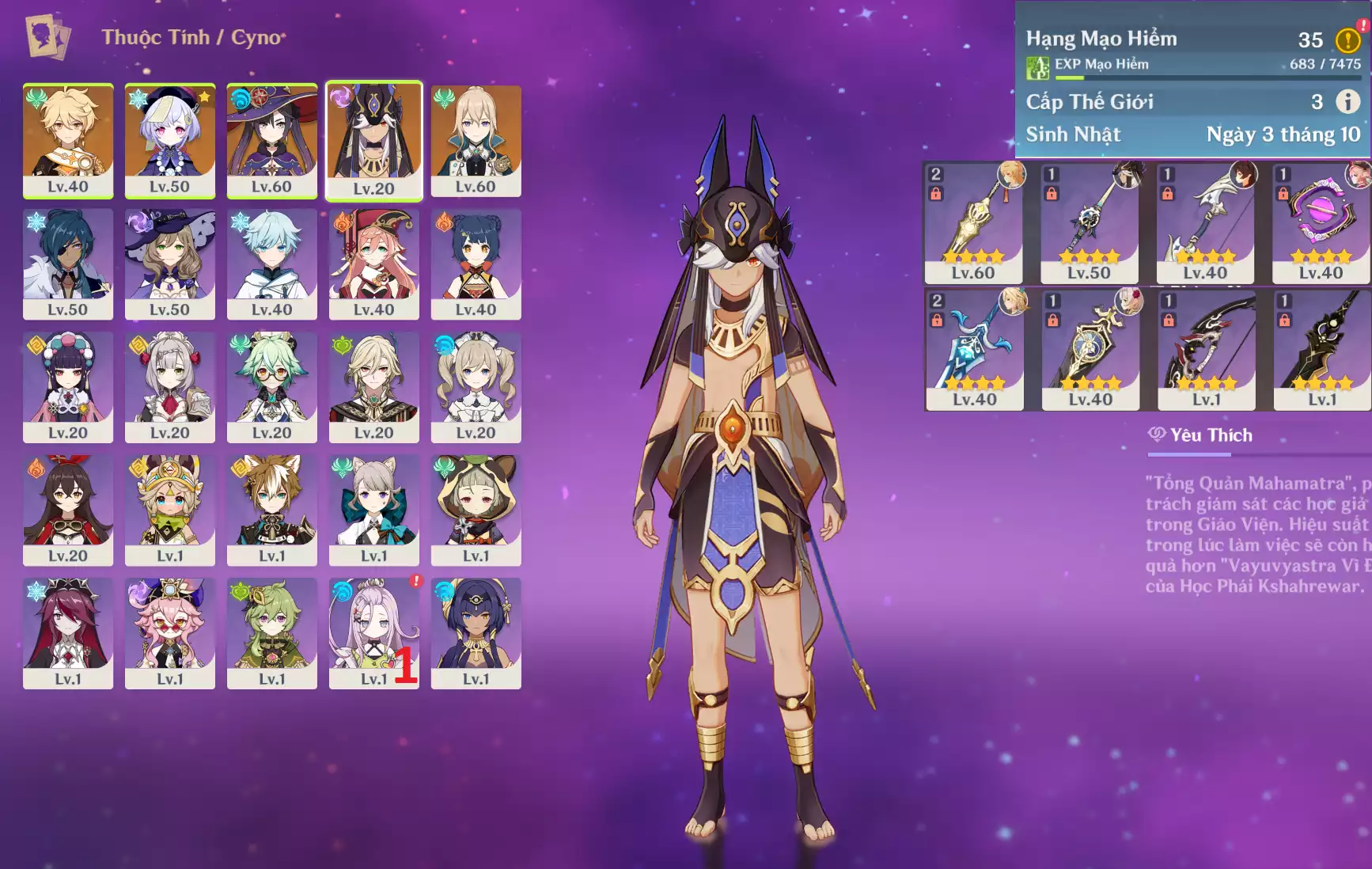 Ar35: Char hot Flins + Arlecchino + Neuvillette + Raiden Shogun BAAL + Citlali + Dehya bennetC1 , banner vũ khí 6 trang, chưa set mail _ chưa set sinh nhật , nguồn CN k lo back
