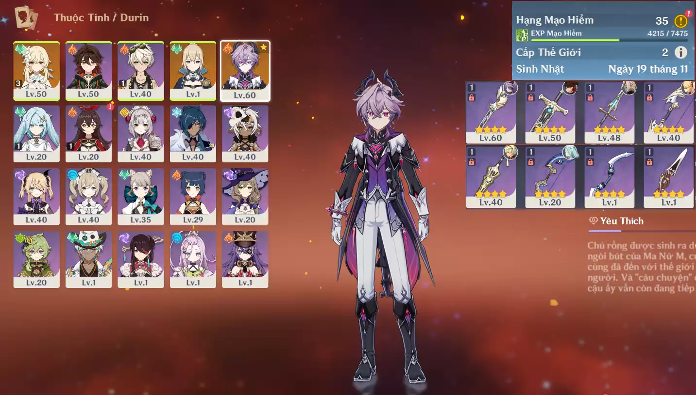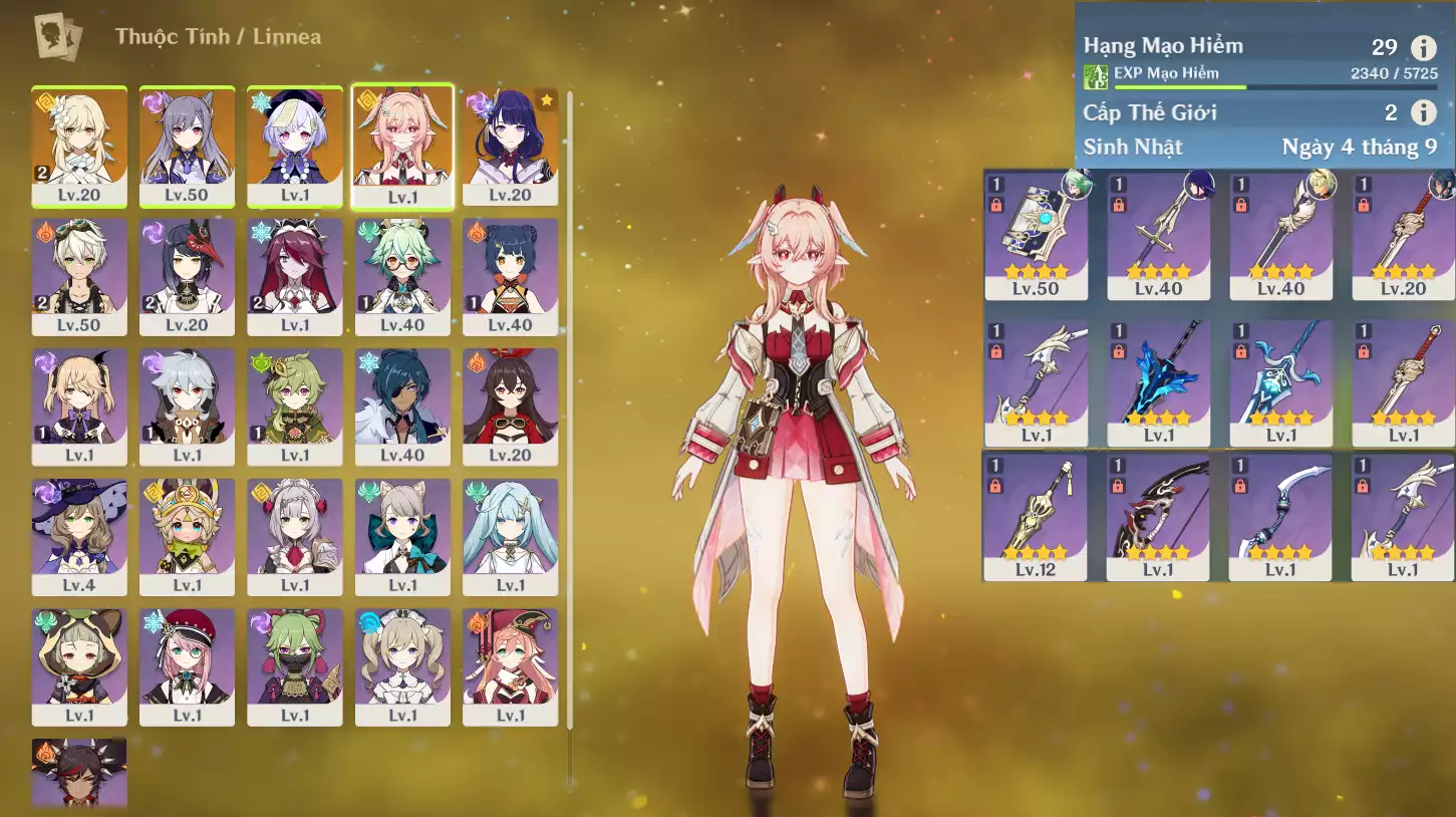 #361592 600,000đ 600,000đ AR level 29 Khu Vực asia Tướng 5* 3 Ar29 : Raidenshogun-baal + Linnea + QiQi + Keqing _ banner nhân vật 1 trang ( quên user ) _ map zin 99% Tướng : 3 Vũ khí : 0 Chi tiết
