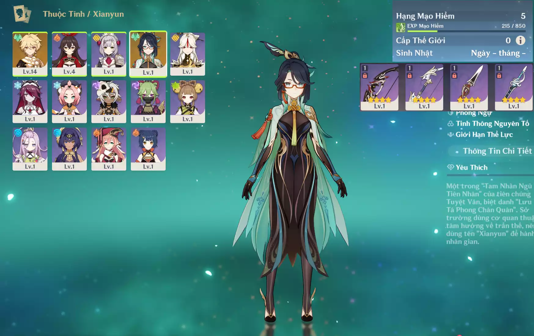 #359451 369,000đ 369,000đ AR level 5 Khu Vực asia Tướng 5* 1 Ar5 : Xianyun _ banner nhân vật 30/90 ( ar5 chưa set user + sinh nhật ) Tướng : 1 Vũ khí : 0 Chi tiết