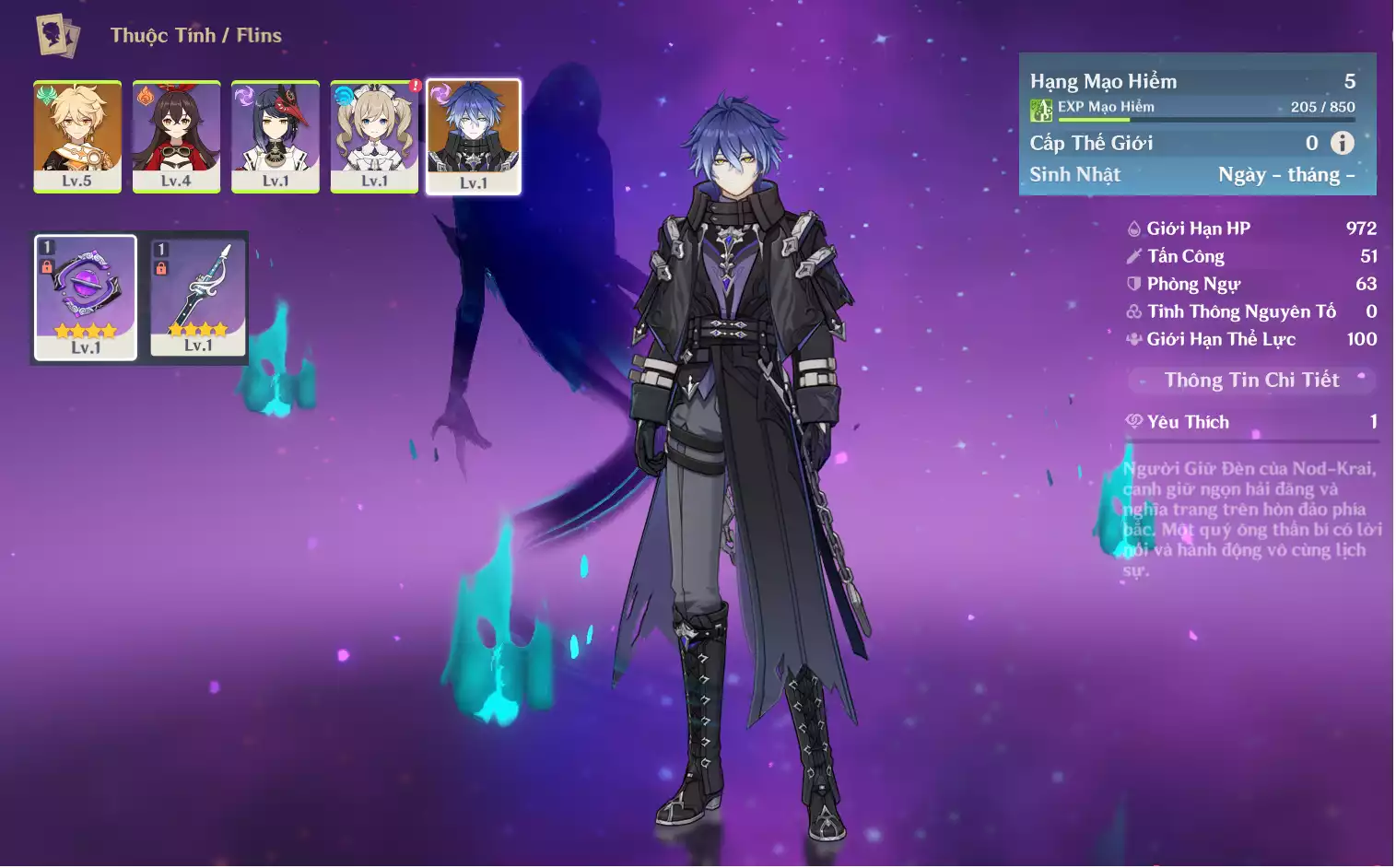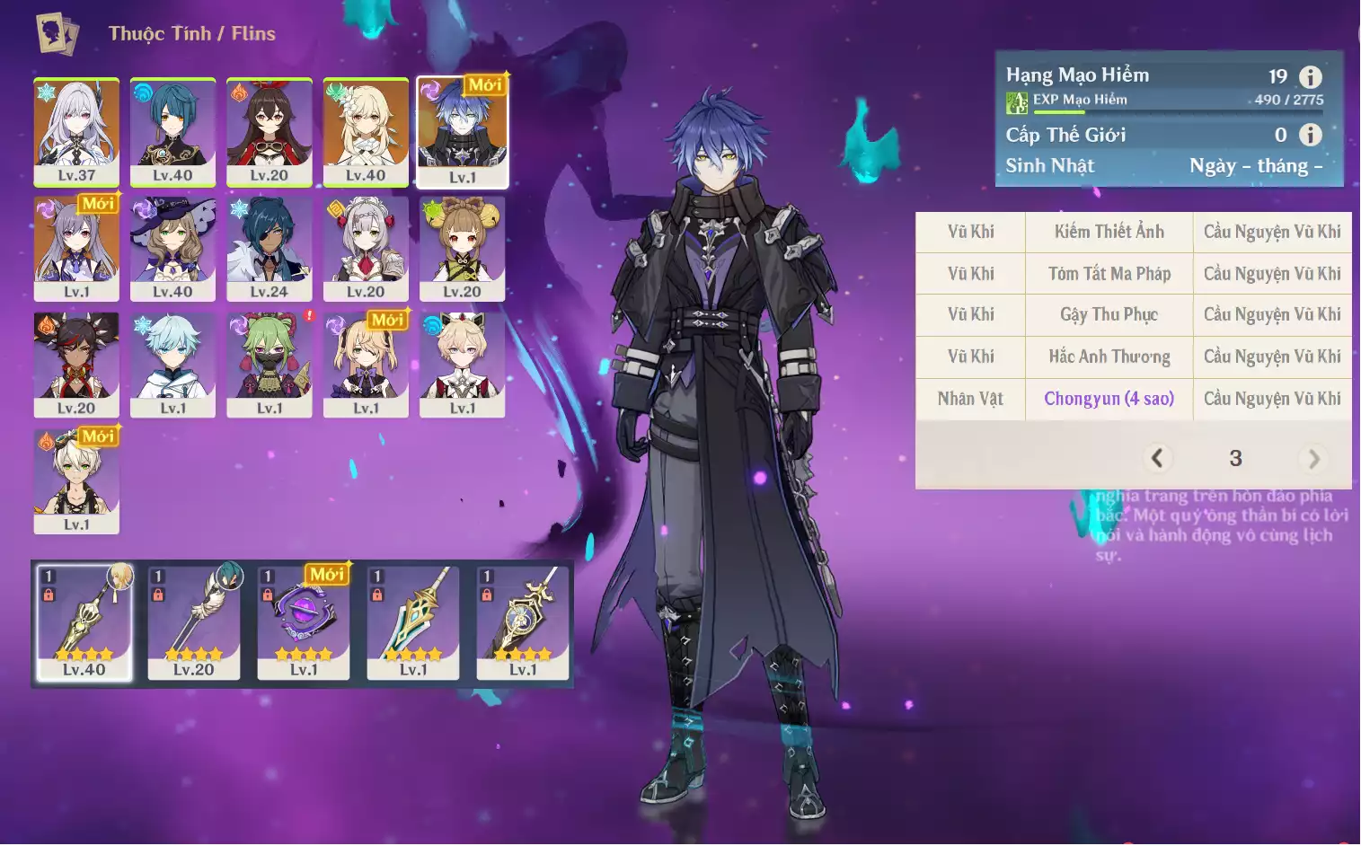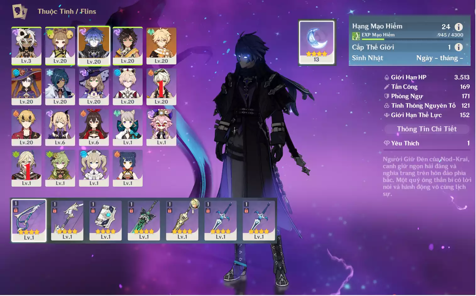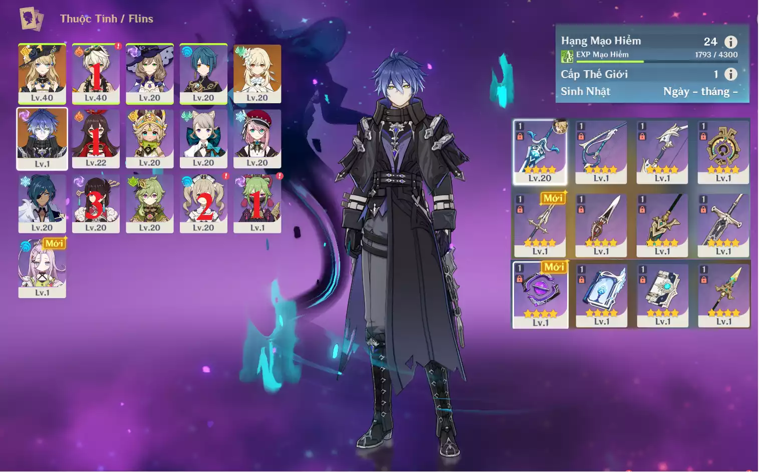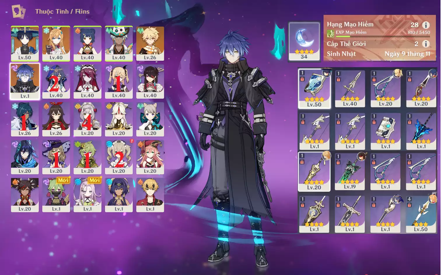 #356112 799,000đ 799,000đ AR level 28 Khu Vực asia Tướng 5* 2 VIP Ar28: Char mới Flins + Escoffier + Scaramouche ( Kẻ lang thang ) main NAM , chưa set user Tướng : 2 Vũ khí : 0 Chi tiết