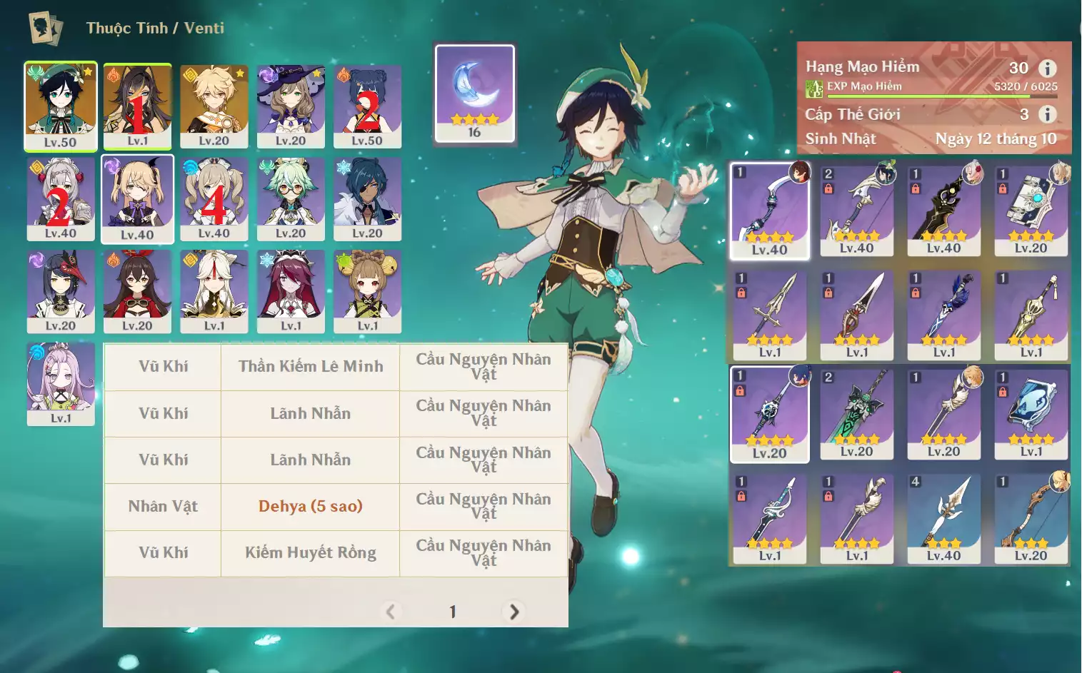 #356102 200,000đ 200,000đ AR level 30 Khu Vực asia Tướng 5* 2 Ar30 UID cổ 800xx : Phong thần Venti + DehyaCM1 main NAM , banner nhân vật ĐÃ LỆCH 2 trang , vũ khí 3 trang Tướng : 2 Vũ khí : 0 Chi tiết