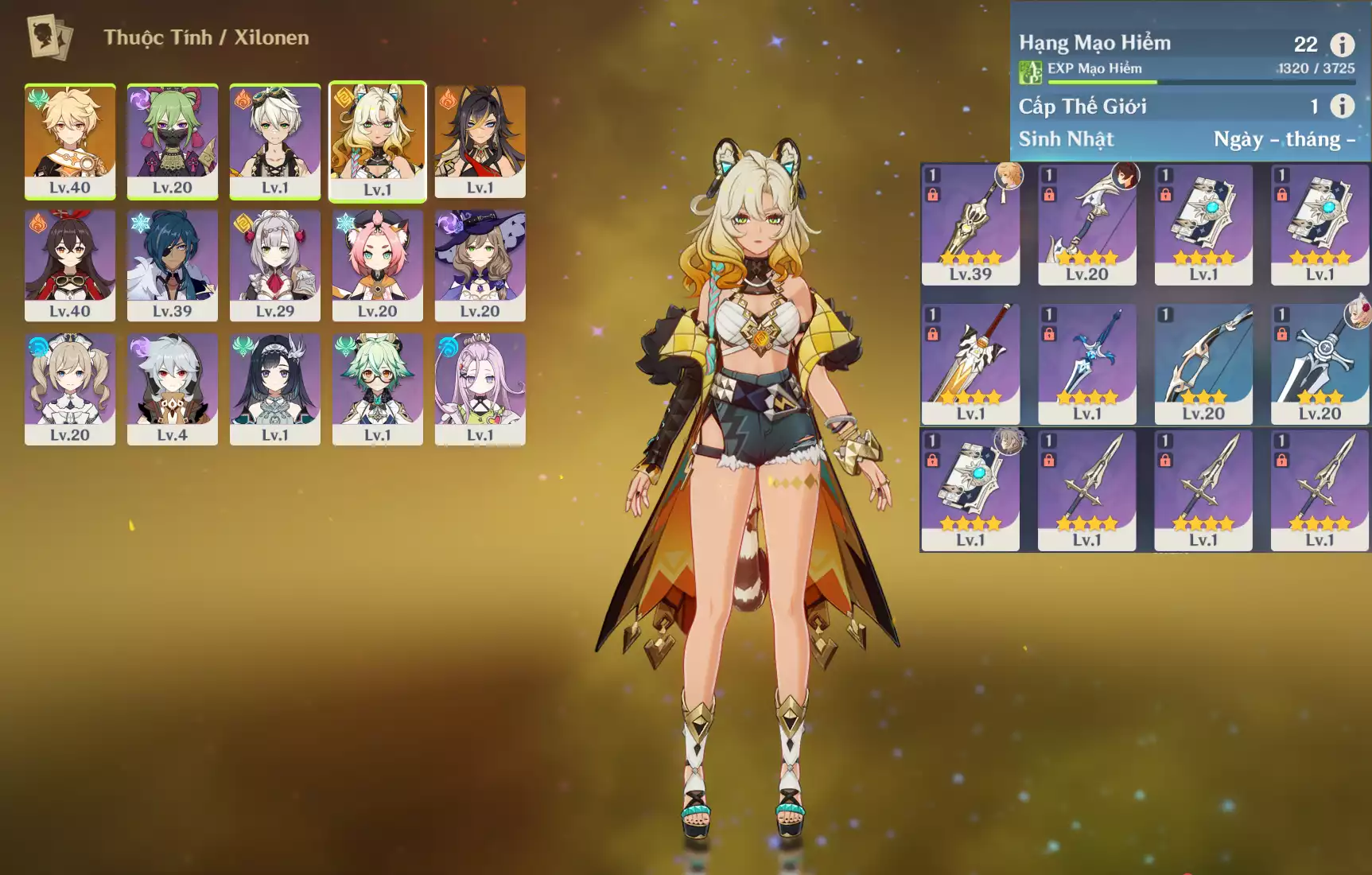 #356580 399,000đ 399,000đ AR level 22 Khu Vực asia Tướng 5* 2 Ar22 : Xilonen + Dehya _ banner nhân vật 20/90 ( chưa set user + sinh nhật ) Tướng : 2 Vũ khí : 0 Chi tiết