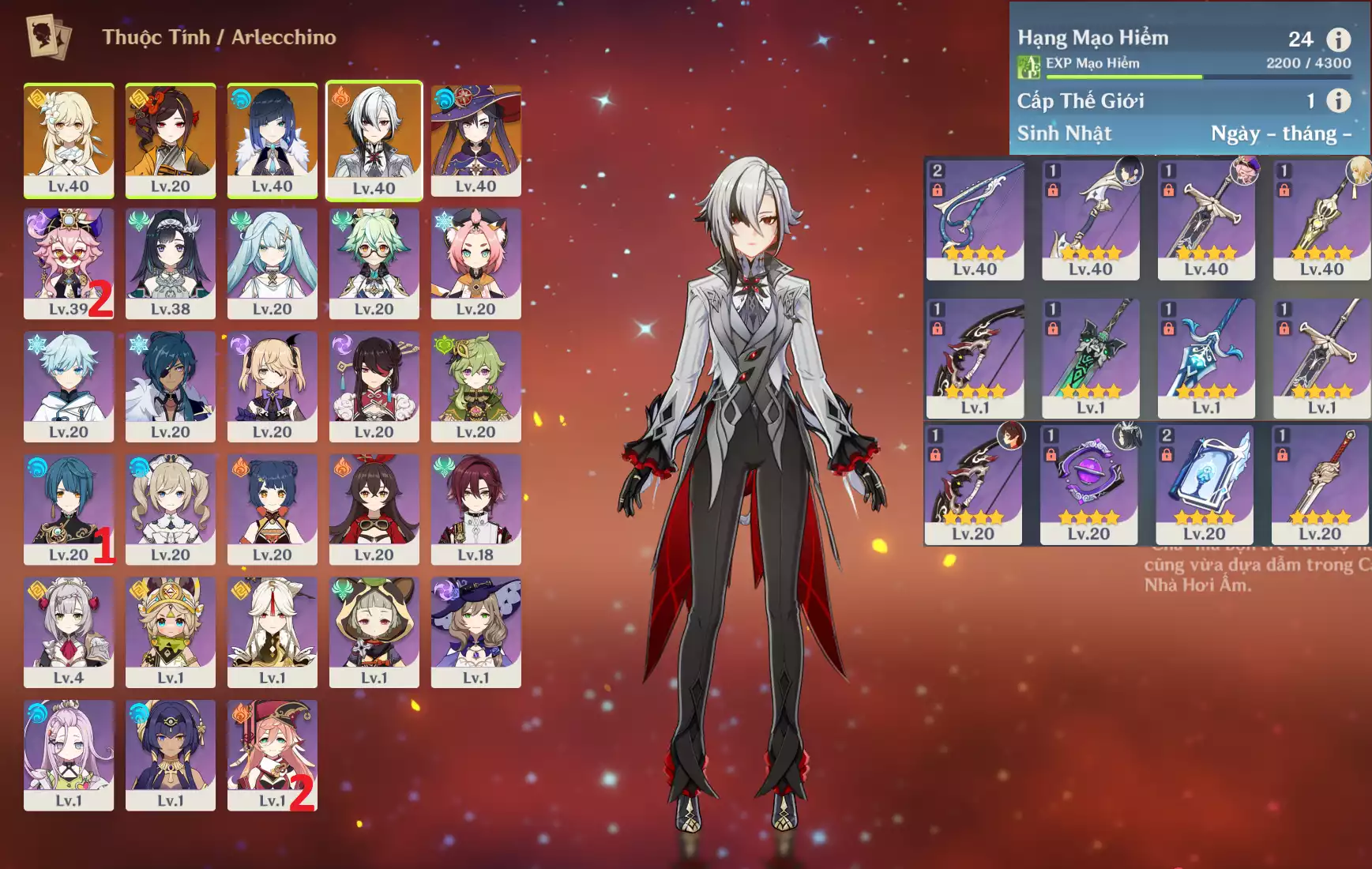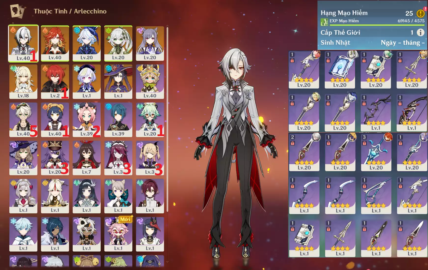 #356589 1,000,000đ 1,000,000đ AR level 24 Khu Vực asia Tướng 5* 5 Ar24 : Arlecchino + Yelan + Chiori + Mona _ banner nhân vật 70/90 ( chưa set user + sinh nhật ) Tướng : 5 Vũ khí : 0 Chi tiết