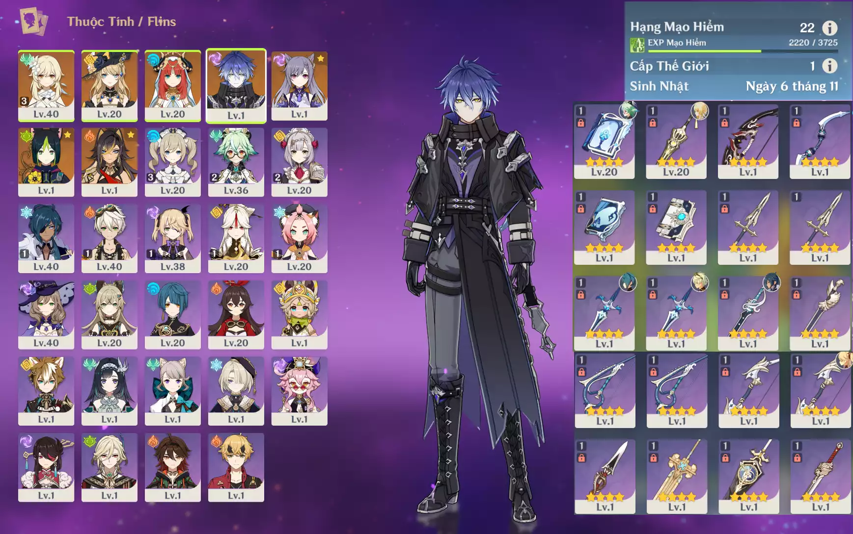 #360317 750,000đ 750,000đ AR level 22 Khu Vực asia Tướng 5* 5 Ar22 : Flins + Nilou + Navia + Dehya + Keqing + Tighnari _ banner nhân vật 30/90 ( chưa set user )_ map zin 99% Tướng : 5 Vũ khí : 0 Chi tiết