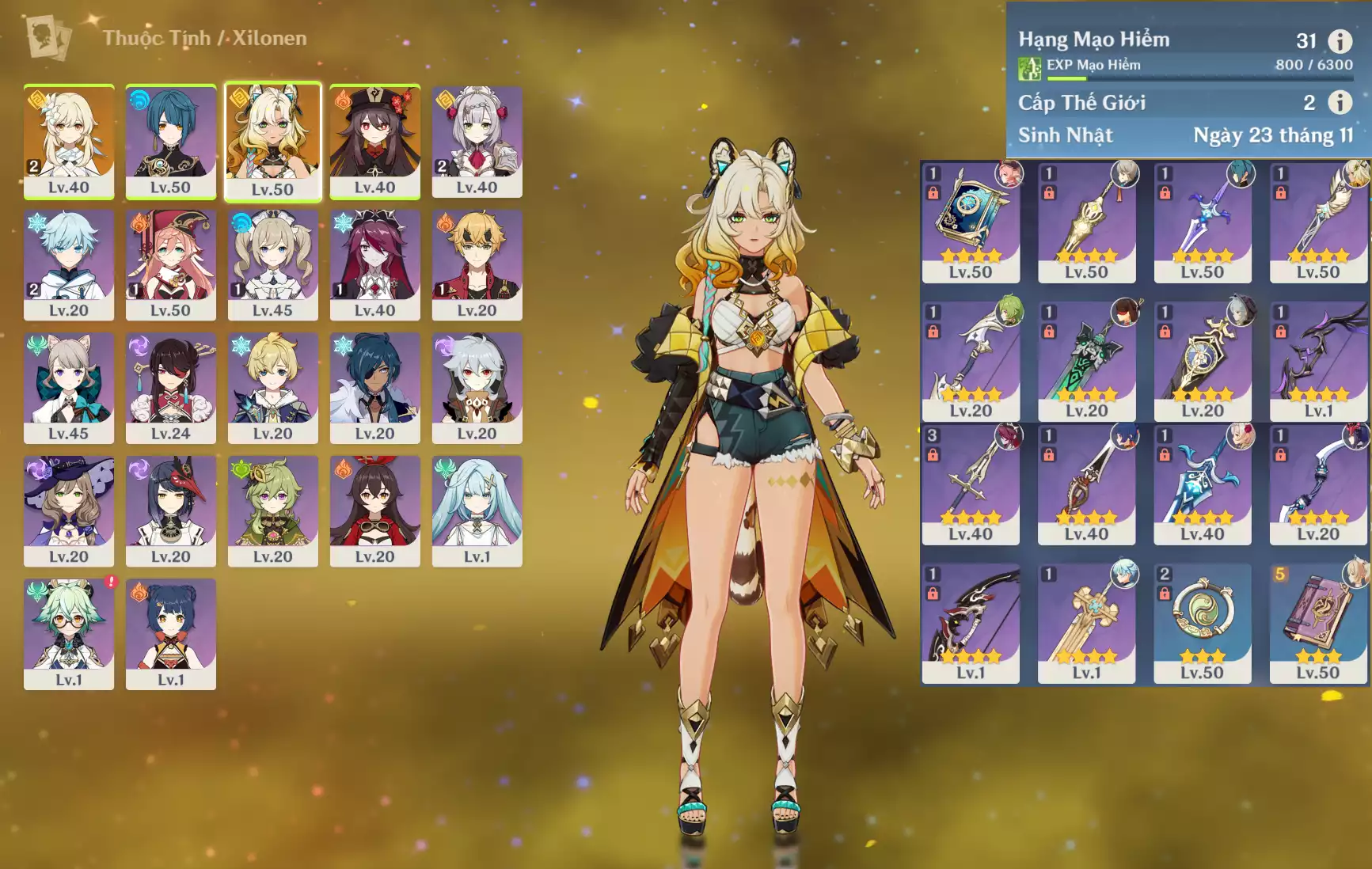 #360186 500,000đ 500,000đ AR level 31 Khu Vực asia Tướng 5* 2 Ar31 : Hutao + Xilonen _ banner nhân vật 15/90 ( quên user ) _ map zin 95% Tướng : 2 Vũ khí : 0 Chi tiết