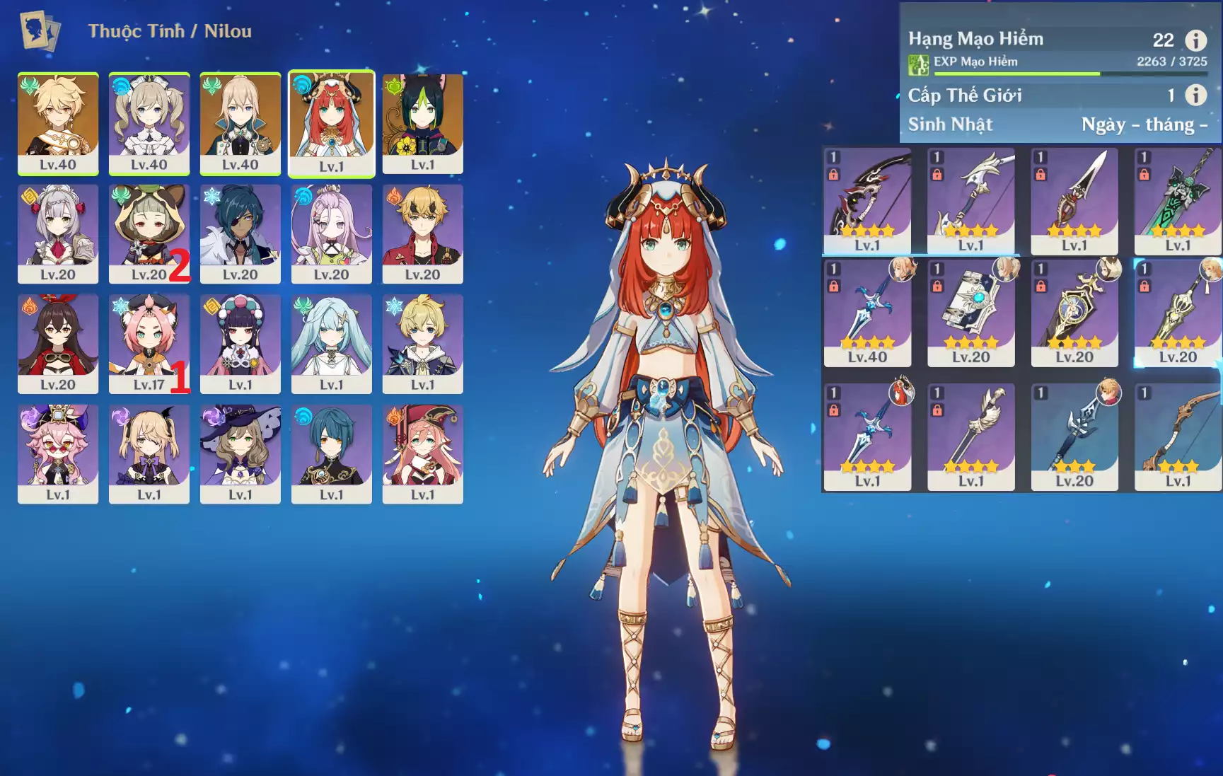 #359094 329,000đ 329,000đ AR level 22 Khu Vực asia Tướng 5* 3 Ar22 : Nilou + Tighnari + Jean _ banner nhân vật 40/90 ( chưa set user + sinh nhật ) _ map zin 99% Tướng : 3 Vũ khí : 0 Chi tiết