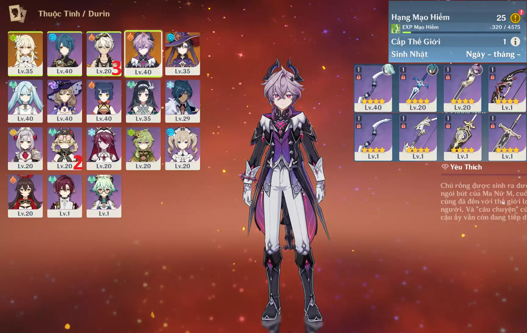 #359097 699,000đ 699,000đ AR level 33 Khu Vực asia Tướng 5* 3 Ar33 : Mavuika + Kinich + QiQi _ banner nhân vật ĐÃ LỆCH 1 trang ( chưa set sinh nhật ) _ map zin 99% Tướng : 3 Vũ khí : 0 Chi tiết