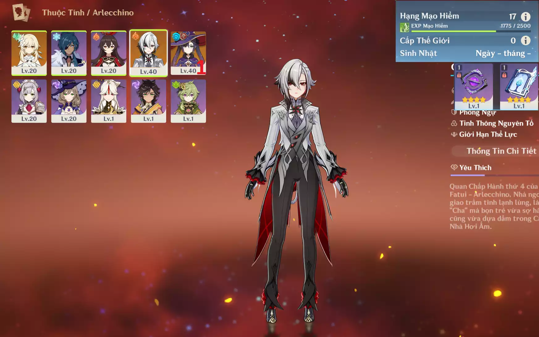 #359086 449,000đ 449,000đ AR level 17 Khu Vực asia Tướng 5* 2 Ar17 : Arlecchino + MonaC1 _ banner nhân vật 10/90 ( chưa set user + sinh nhật ) Tướng : 2 Vũ khí : 0 Chi tiết