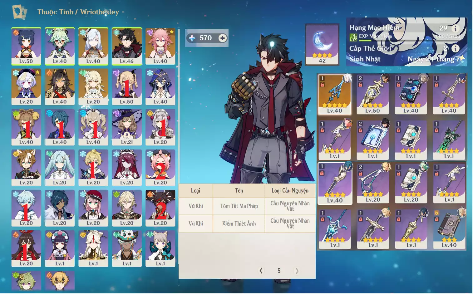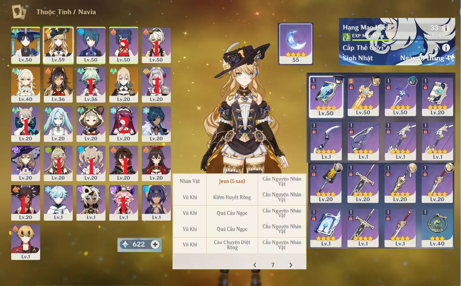 #355181 599,000đ 599,000đ AR level 34 Khu Vực asia Tướng 5* 5 Ar33: Navia + Kazuha + Xianyun + keqing bennetC1 ( banner nhân vật 12 trang ) Tướng : 5 Vũ khí : 0 Chi tiết