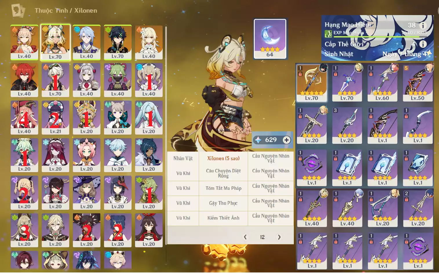 #355189 799,000đ 799,000đ AR level 38 Khu Vực asia Tướng 5* 7 VIP Ar38: XILONEN + Yoimiya + Ayato + Kinich PQ* + Diluc bennetC1 ( banner nhân vật ĐÃ LỆCH Jean 4 trang) Tướng : 7 Vũ khí : 1 Chi tiết