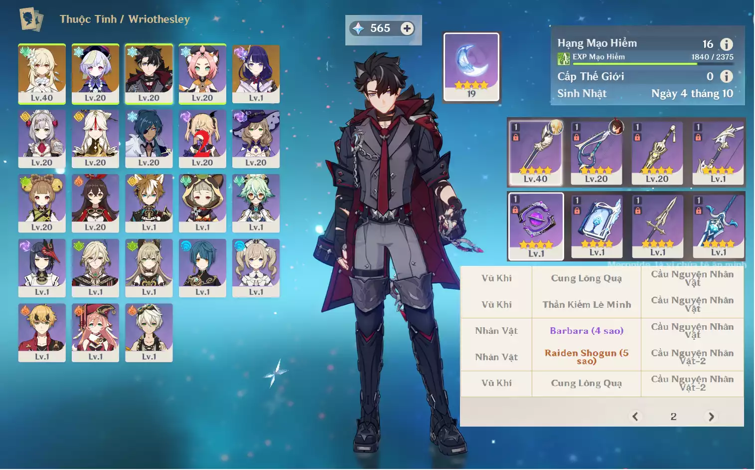 #355192 699,000đ 699,000đ AR level 16 Khu Vực asia Tướng 5* 4 VIP Ar16: WRIOT + Raiden Shogun BAAL + QiQi bennet, banner nhân vật 10 trang gần nổ, chưa set user Tướng : 4 Vũ khí : 0 Chi tiết