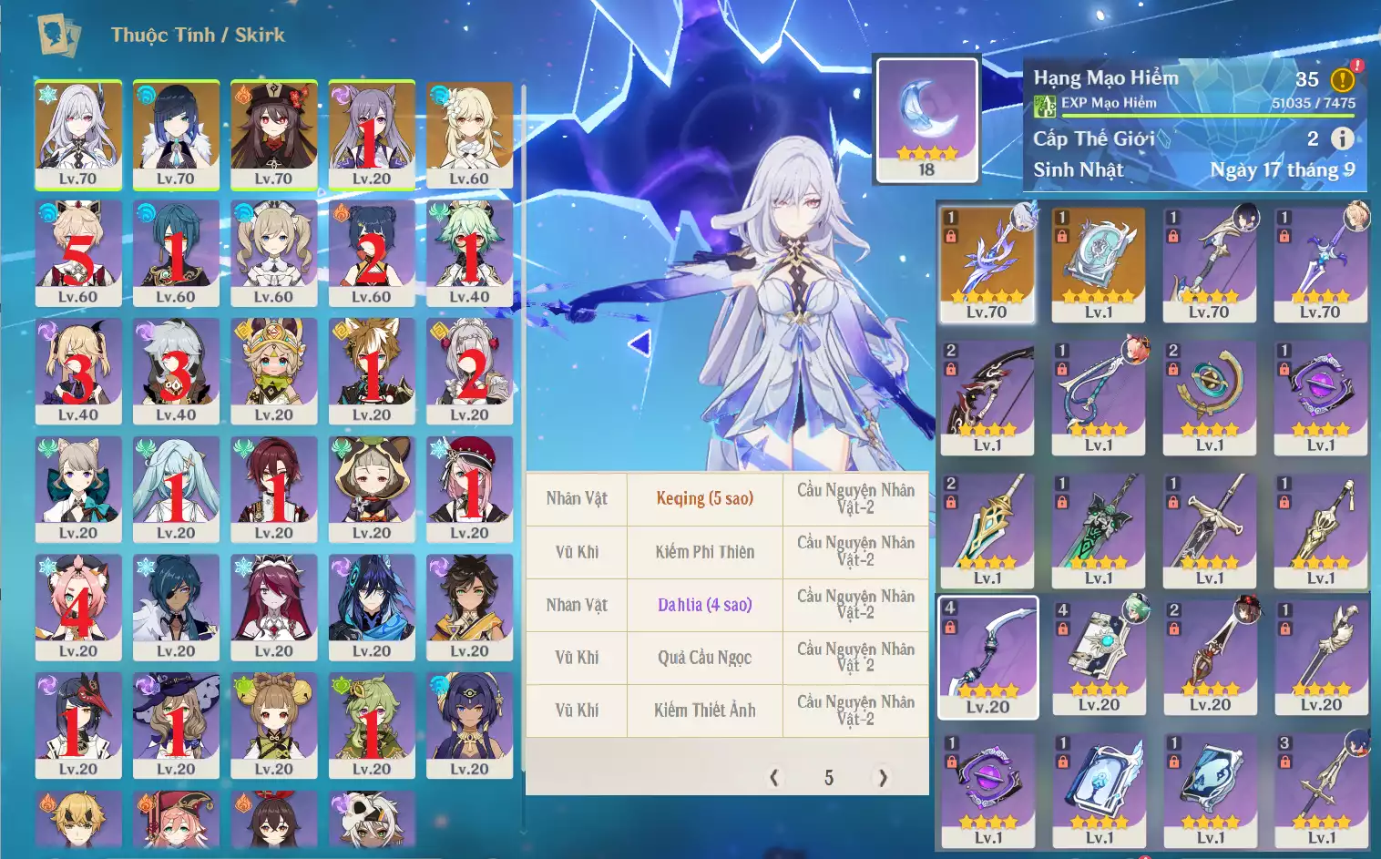 #355269 1,800,000đ 1,800,000đ AR level 35 Khu Vực asia Tướng 5* 4 Ar35: Skirk trấn Thương diệu + Yelan + Hutao + keqingCM1 DTTP* , banner nhân vật ĐÃ LỆCH 12 trang sure limited Tướng : 4 Vũ khí : 2 Chi tiết