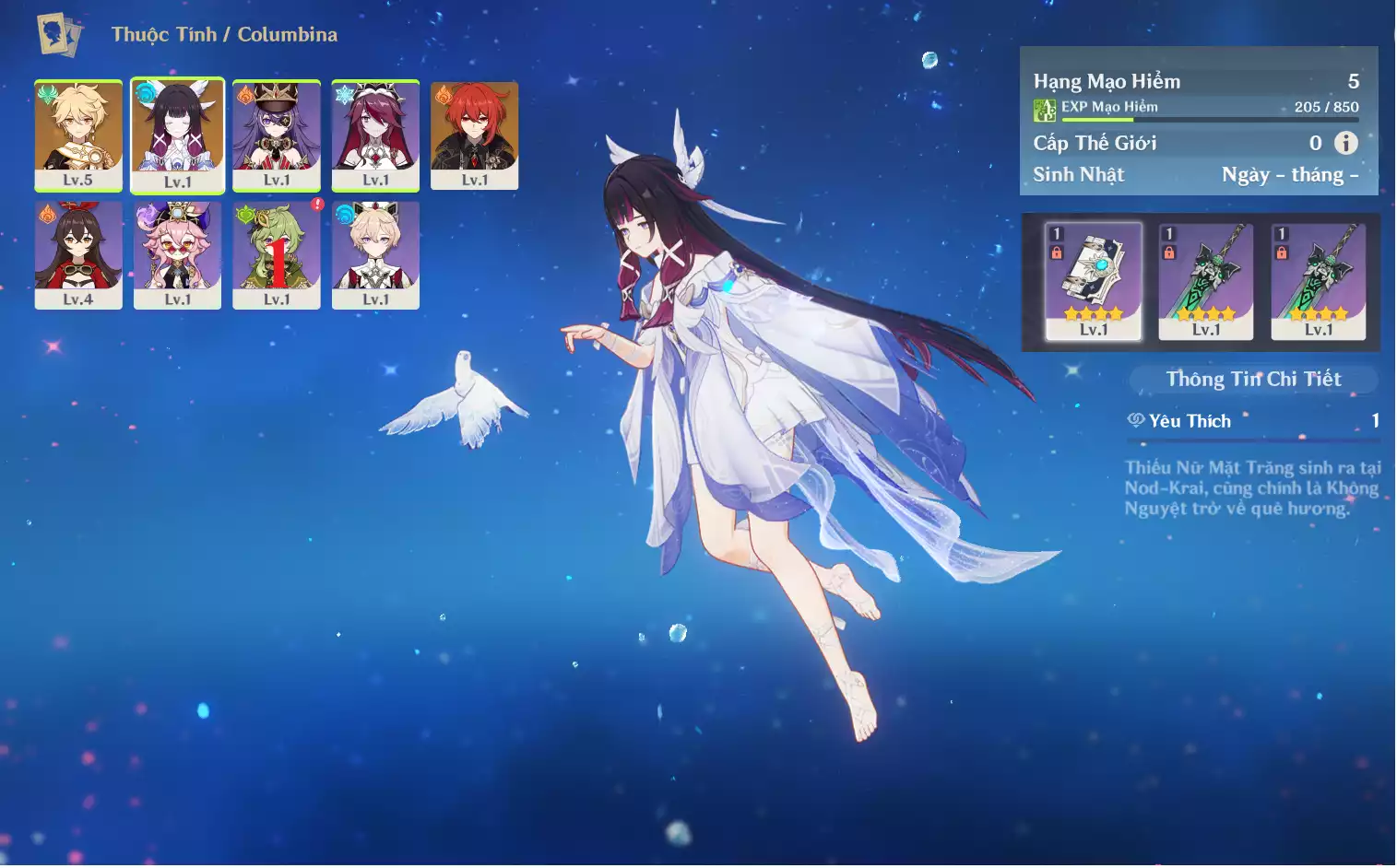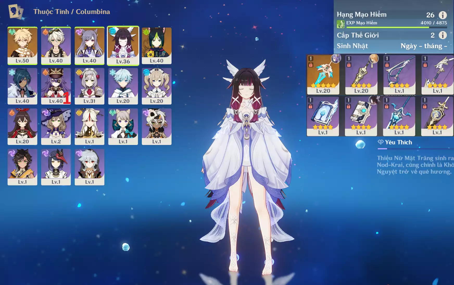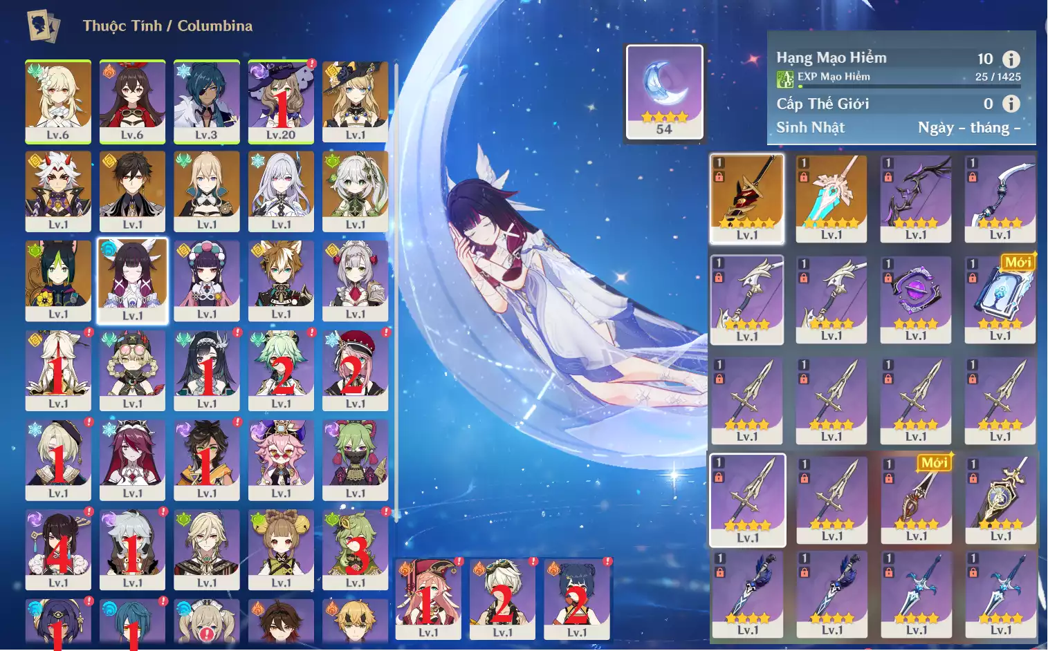 #358949 500,000đ 500,000đ AR level 26 Khu Vực asia Tướng 5* 3 Ar26 : Columbina + Keqing + TKK + Tighnari _ banner nhân vật 2 trang ( chưa set user + sinh nhật ) _ map zin 95% Tướng : 3 Vũ khí : 1 Chi tiết