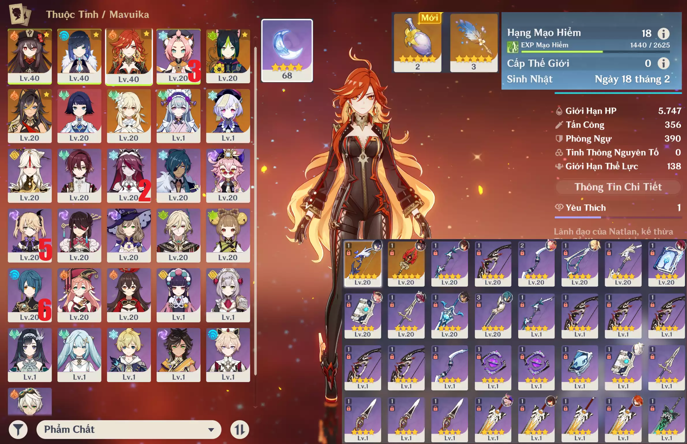 #358991 3,500,000đ 3,500,000đ AR level 10 Khu Vực asia Tướng 5* 9 SIÊU PHẨM ar10: Columbina + ITTO Trấn Xích Giác + ZHONGLI + NAVIA TKKN* + NAHIDA + Char mới SKIRK + Tighnari Jean bennetC2 , banner vũ khí 5 trang , chưa set sinh nhật , nguồn CN k lo back Tướng : 9 Vũ khí : 2 Chi tiết