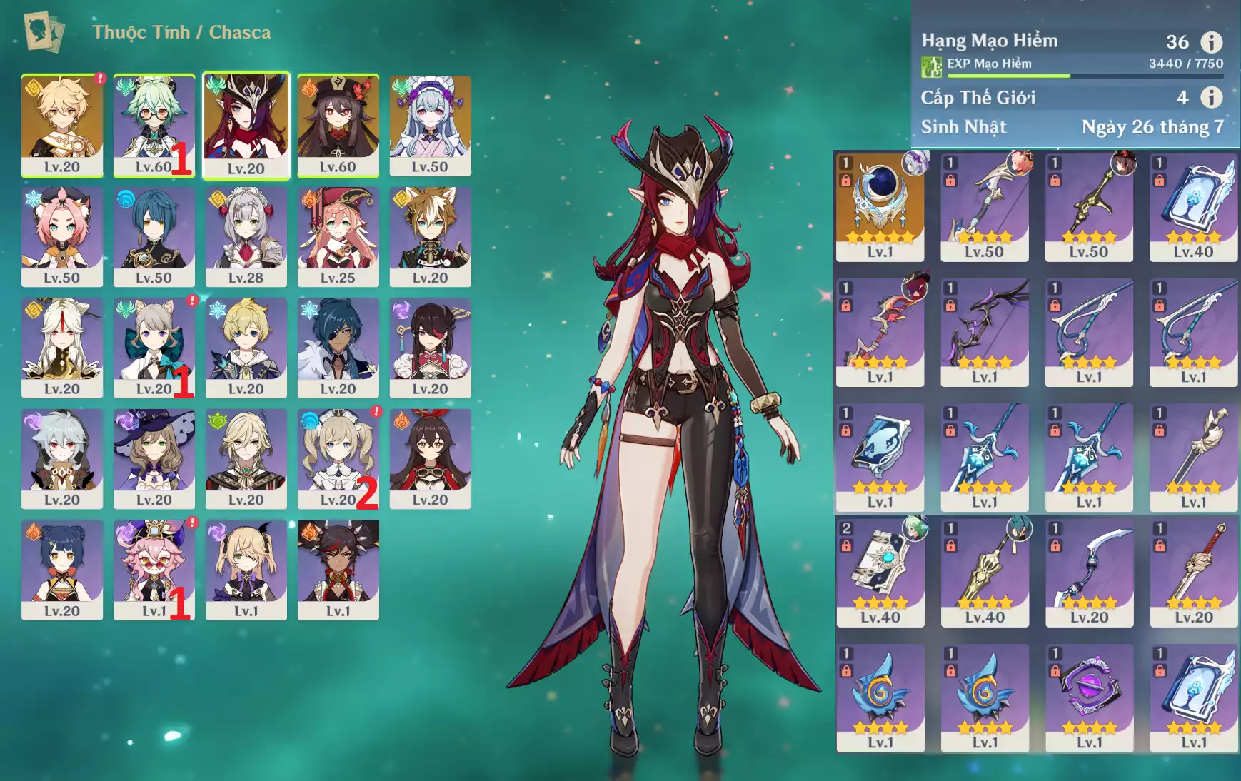 #358952 550,000đ 550,000đ AR level 36 Khu Vực asia Tướng 5* 3 Ar36 : Chasca + Hutao + Mizuki _ banner nhân vật 60/90 ( quên user ) _ map zin gần 99% Tướng : 3 Vũ khí : 1 Chi tiết