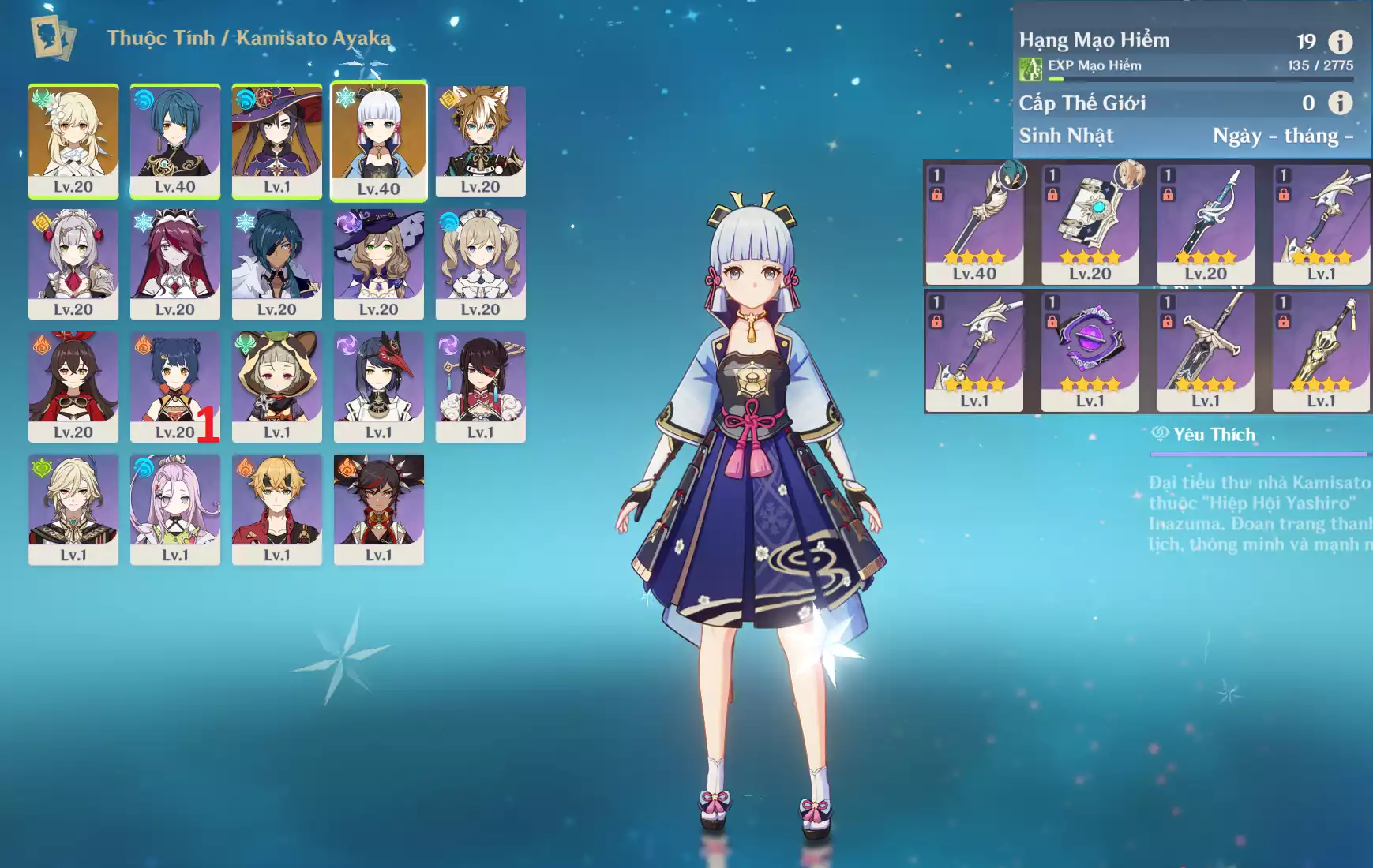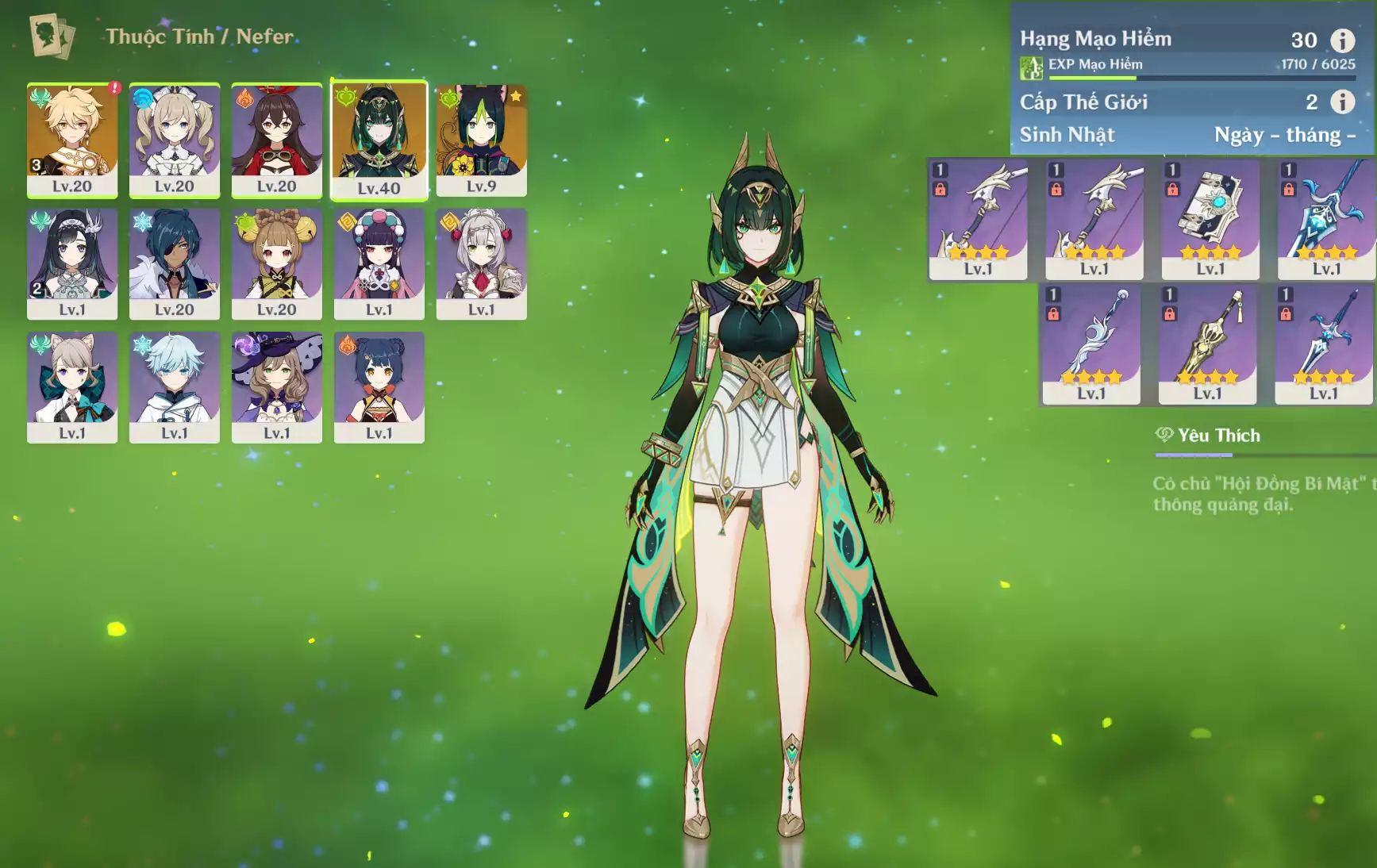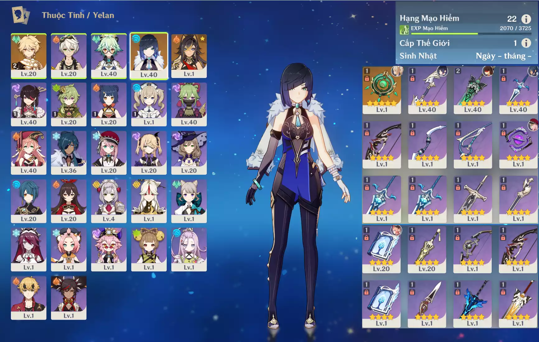 #361363 300,000đ 300,000đ AR level 22 Khu Vực asia Tướng 5* 2 Ar22 : Yelan + Dehya + NBHH _ banner nhân vật 45/90 lần ( chưa set sinh nhật, quên user ) _ map zin 99% Tướng : 2 Vũ khí : 1 Chi tiết