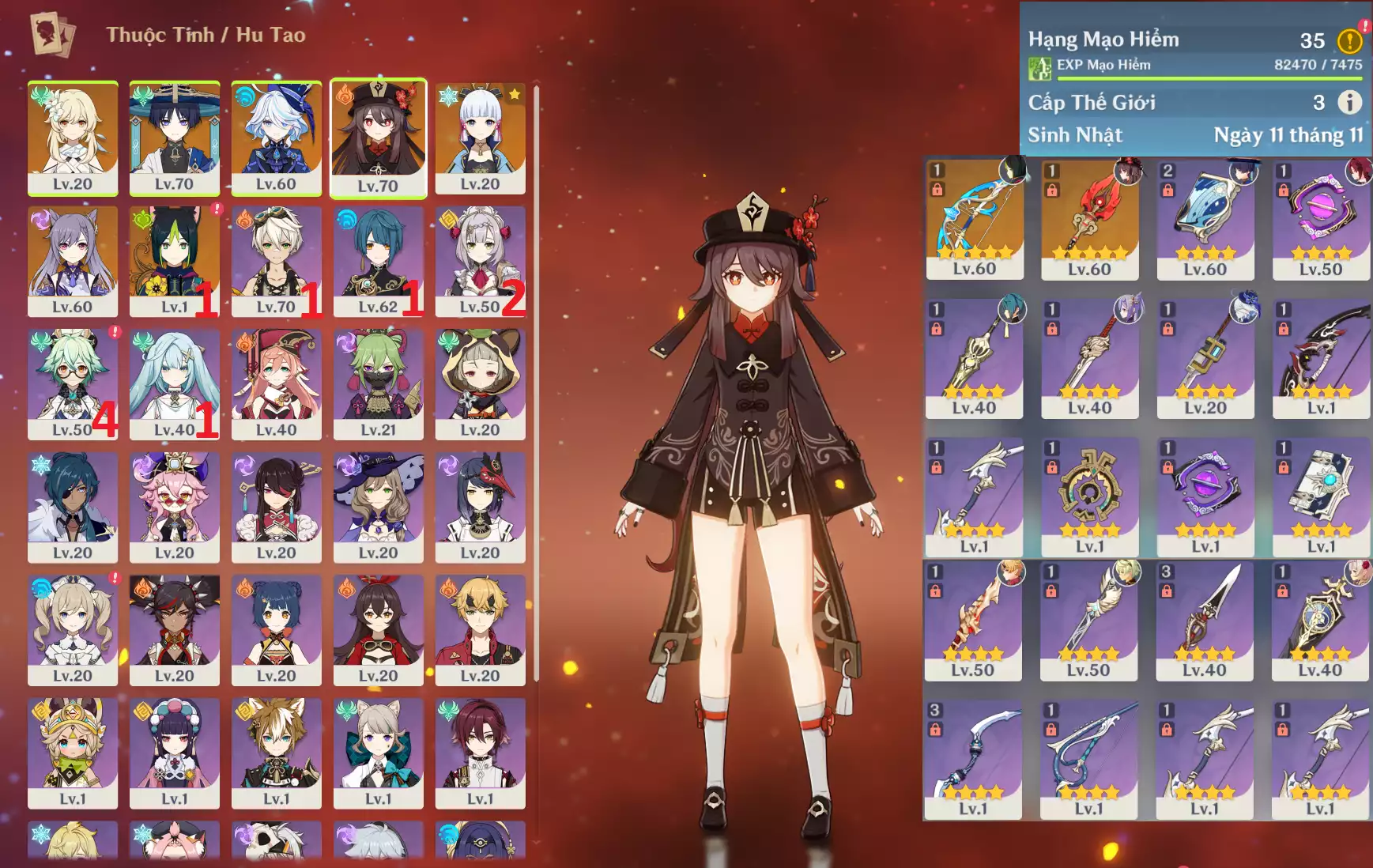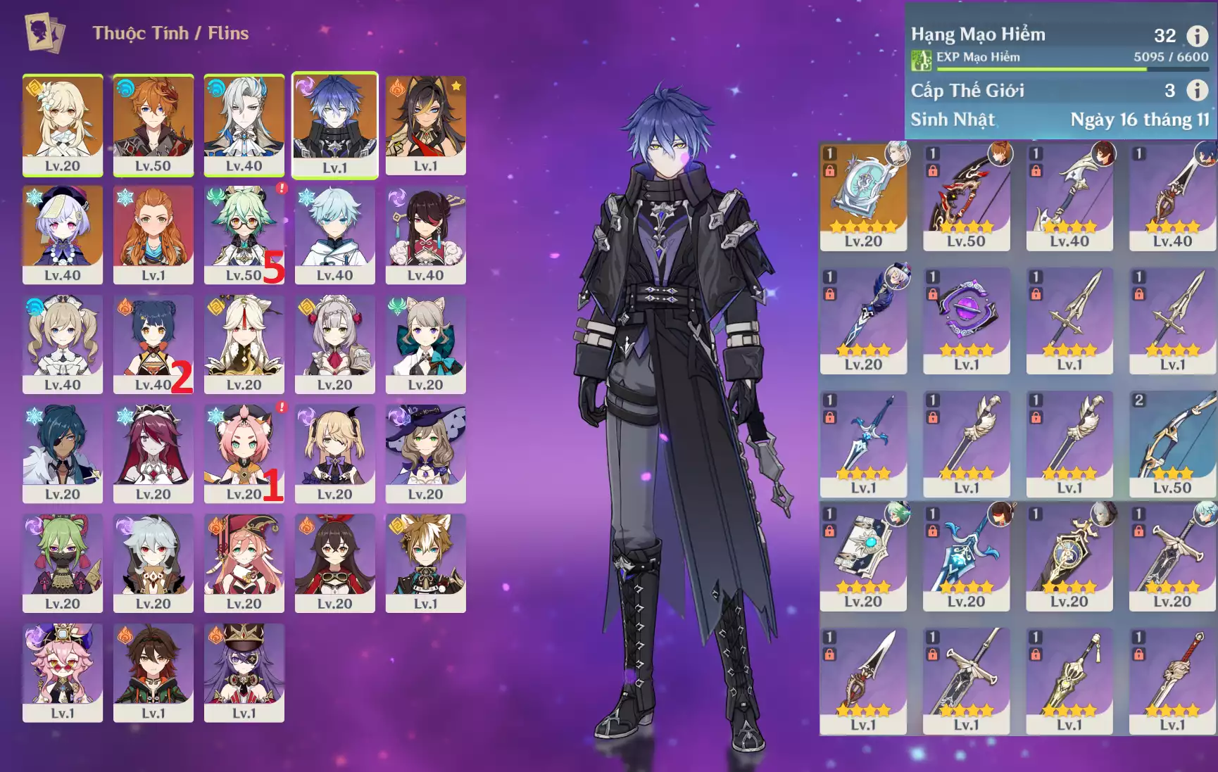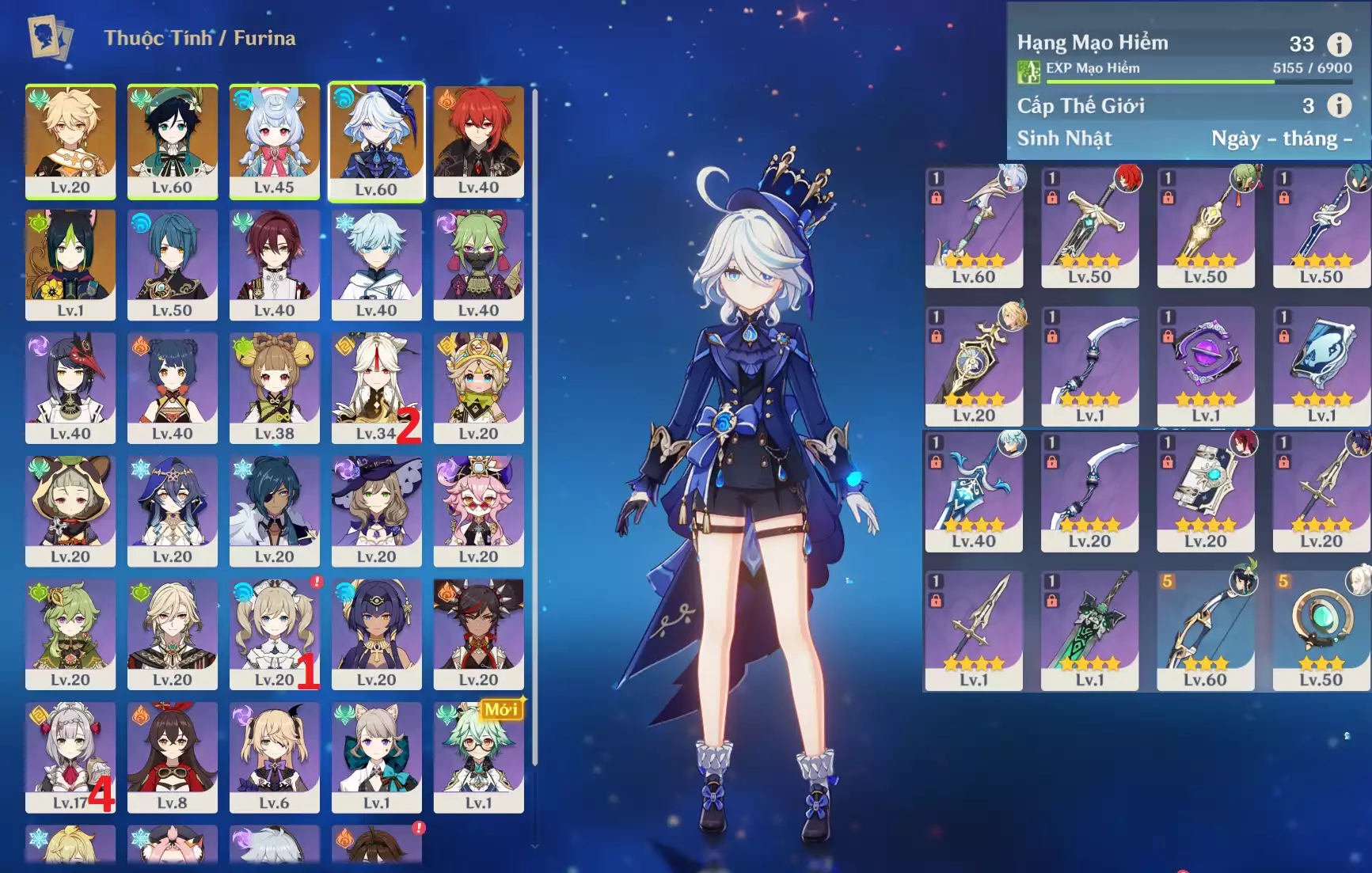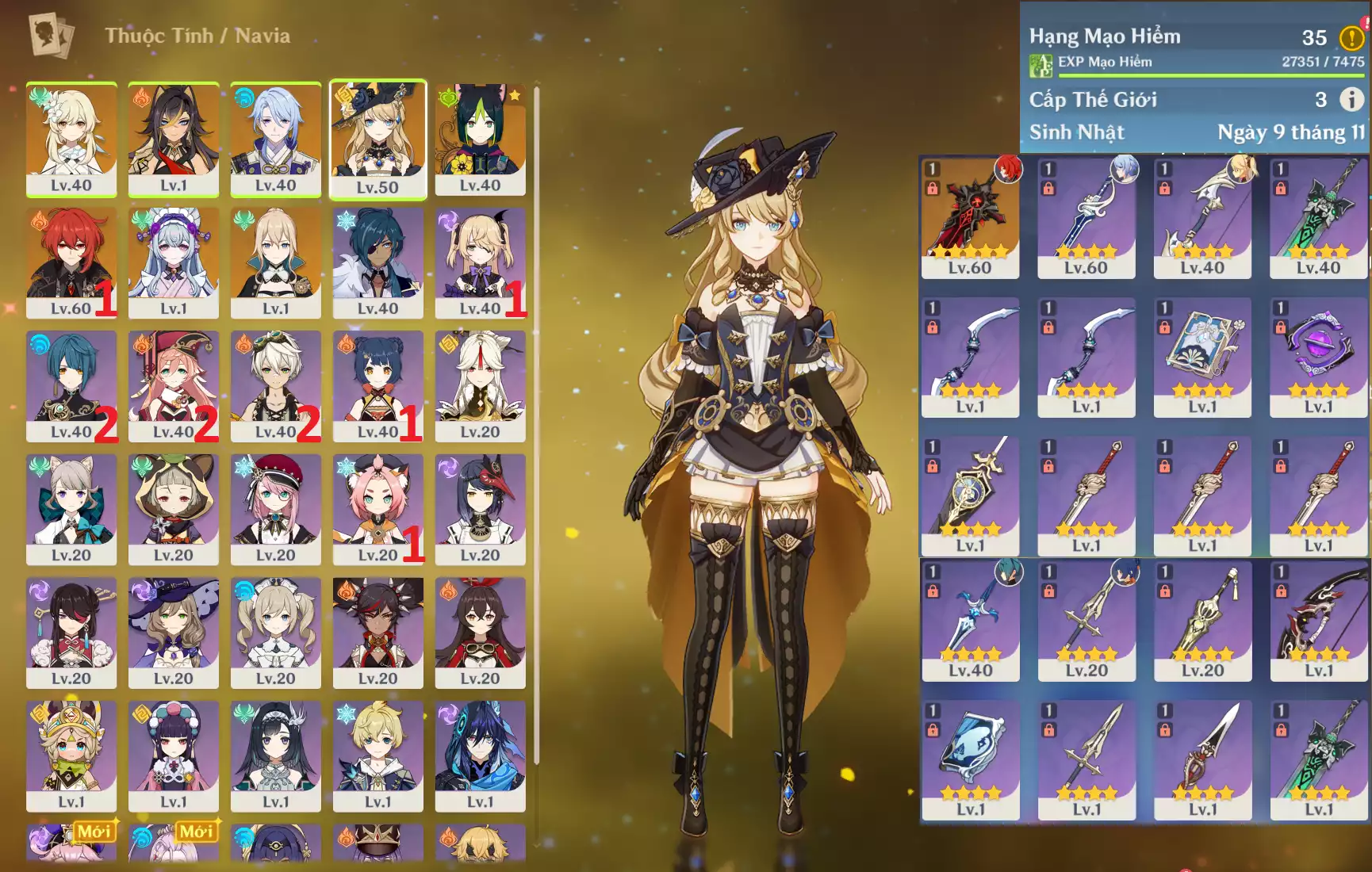 #356553 500,000đ 500,000đ AR level 35 Khu Vực asia Tướng 5* 7 Ar35 : Navia + Ayato + DilucC1 * Trấn ( ĐCCS ) + Tighnari + Dehya + Mizuki + Jean _ banner nhân vật ĐÃ LỆCH 20/90 (chưa set user ) _ map zin 99% Tướng : 7 Vũ khí : 1 Chi tiết