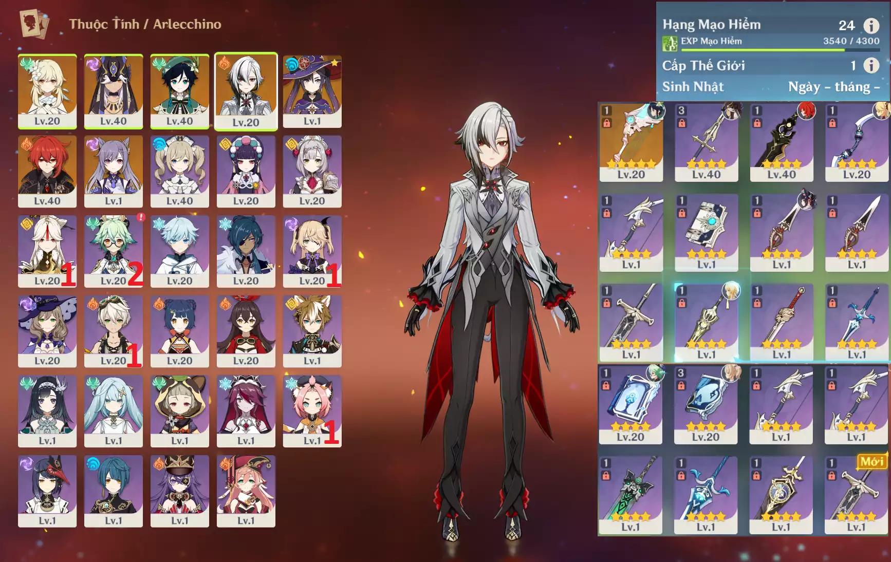 #356561 899,000đ 899,000đ AR level 24 Khu Vực asia Tướng 5* 8 Ar24 : Arlecchino + Cyno + Venti * Trấn ( CTK ) + Keqing + Mona + Diluc _ banner nhân vật ĐÃ LỆCH 10/90 ( acc trắng thông tin _ chưa set email + sinh nhật ) Tướng : 8 Vũ khí : 1 Chi tiết