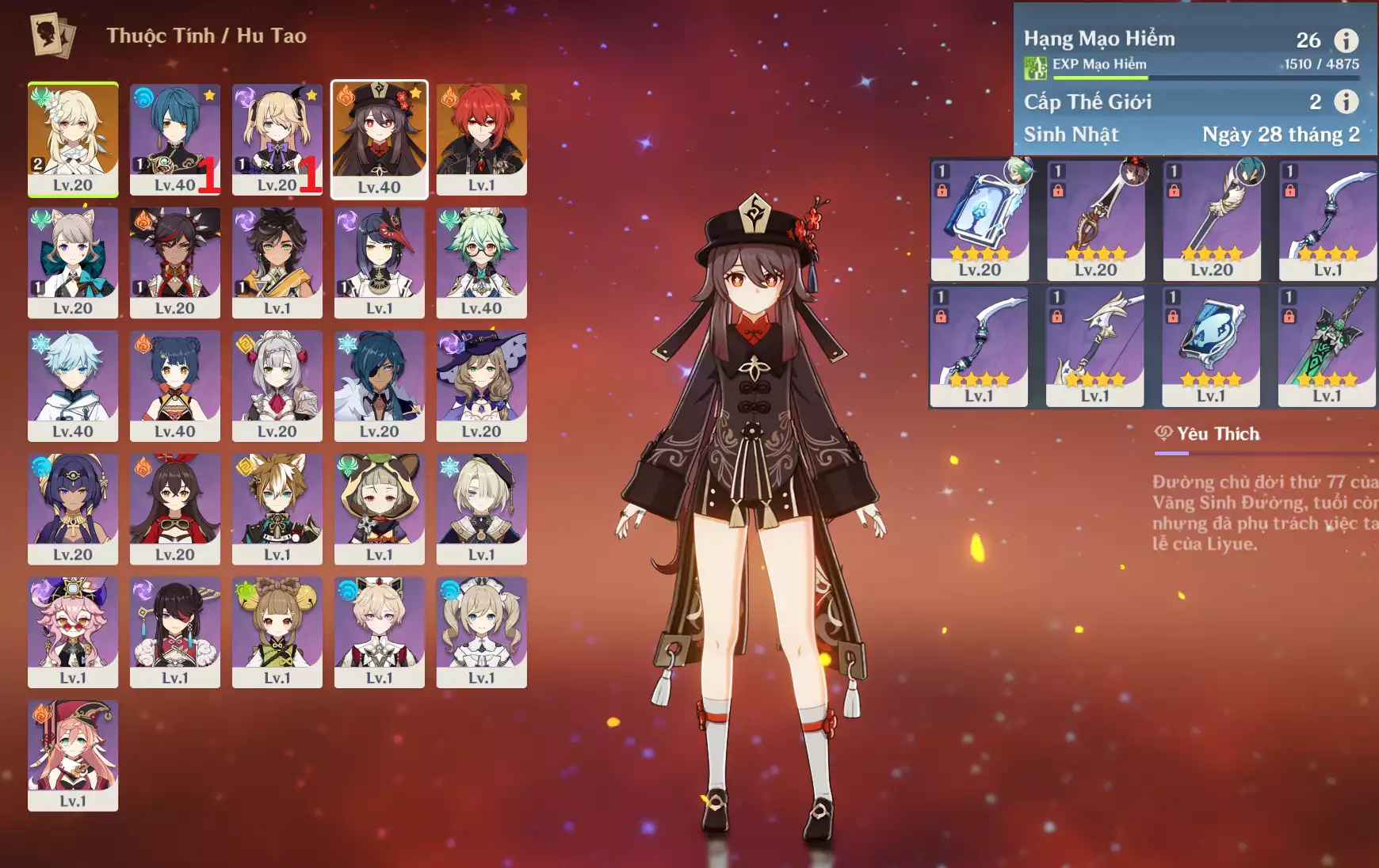 #361326 349,000đ 349,000đ AR level 26 Khu Vực asia Tướng 5* 3 Ar26 : Hutao + Diluc xingqiuC1 _ banner nhân vật 40/90 ( quên user ) _ map zin 99% Tướng : 3 Vũ khí : 0 Chi tiết