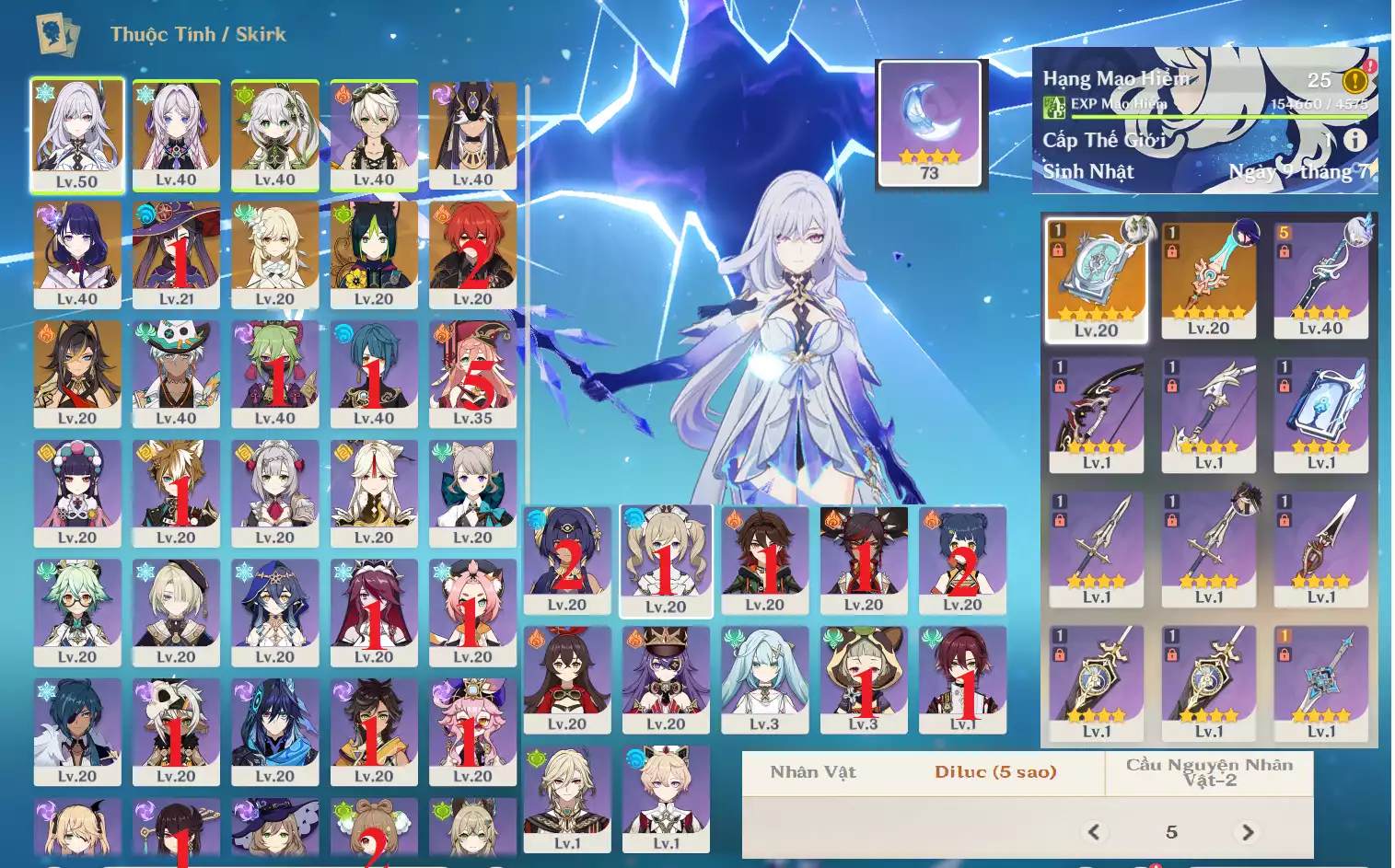 #361329 1,000,000đ 1,000,000đ AR level 25 Khu Vực asia Tướng 5* 10 Ar25: Skirk + Raiden Shogun Baal XSTK* + Nahida ĐTTP* + Citlali + Cyno + Tighnari Dehya MonaC1 Diluc bennet, banner nhân vật ĐÃ LỆCH 5 trang , acc ép cấp, map còn 95% Tướng : 10 Vũ khí : 2 Chi tiết
