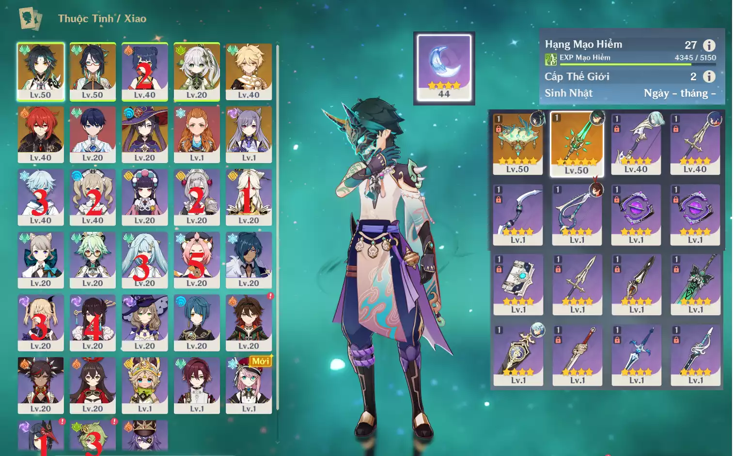 #361274 1,500,000đ 1,500,000đ AR level 27 Khu Vực asia Tướng 5* 6 Siêu VIP combo Ar27: Xiao trấn HPD* + Xianyun trấn DATH* + Nahida + Mona Diluc Keqing main NAM , banner nhân vật 5 trang , chưa set mail _ chưa set sinh nhật , map zin 99% Tướng : 6 Vũ khí : 2 Chi tiết