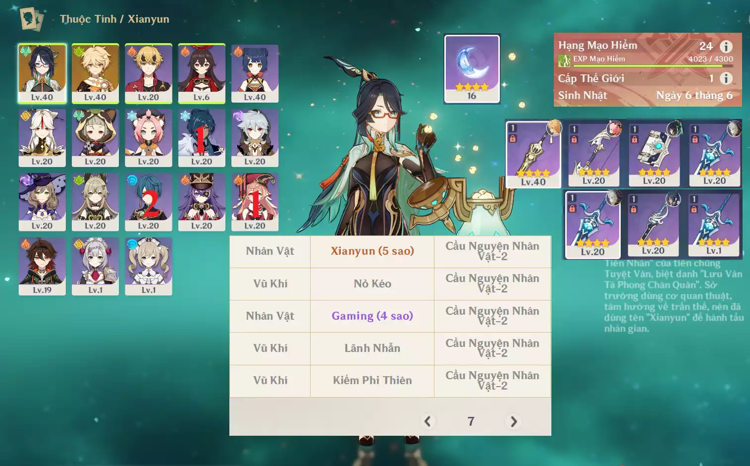 #352181 399,000đ 399,000đ AR level 24 Khu Vực asia Tướng 5* 2 Ar24: Xianyun + banner nhân vật 11 trang , chưa set user Tướng : 2 Vũ khí : 0 Chi tiết