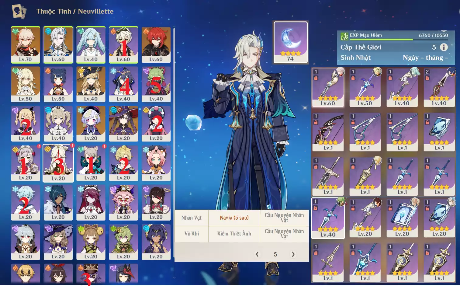 #352371 699,000đ 699,000đ AR level 39 Khu Vực asia Tướng 5* 7 AR3x: NEUVILLETTE + KAZUHA + NAVIA + QiQi Mona Diluc bennetC1 ( banner nhân vật 15 trang sắp nổ) , chưa set sinh nhật Tướng : 7 Vũ khí : 0 Chi tiết
