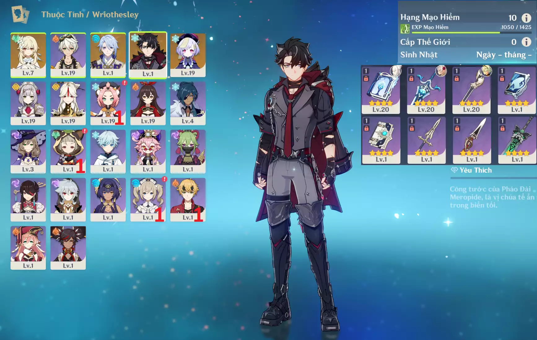 #352321 599,000đ 599,000đ AR level 10 Khu Vực asia Tướng 5* 5 Ar10 : Wirothesley + Ayato + QiQi + tighnari _ bennet dionaC1 _ banner nhân vật ĐÃ LỆCH 2 trang ( acc trắng thông tin _ chưa set email + sinh nhật ) Tướng : 5 Vũ khí : 0 Chi tiết