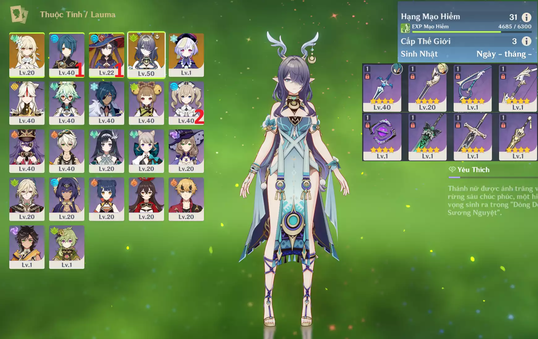 #357281 400,000đ 400,000đ AR level 31 Khu Vực asia Tướng 5* 3 Ar31 : Lauma + MonaC1 + QiQi _ banner nhân vật ĐÃ LỆCH 1 trang ( chưa set user + sinh nhật ) Tướng : 3 Vũ khí : 0 Chi tiết