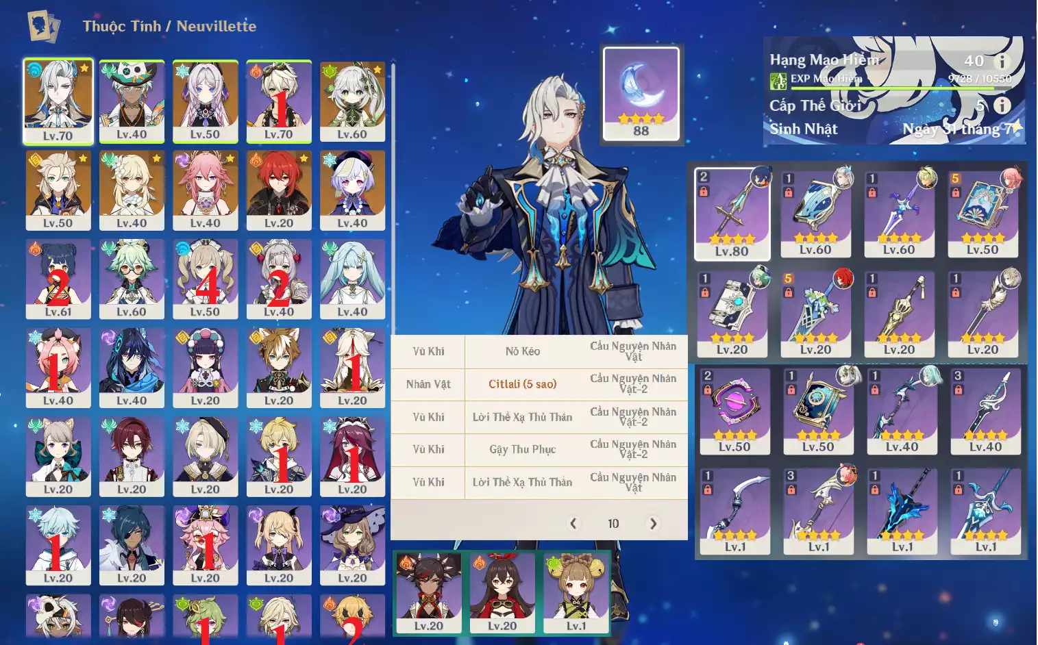 #357292 699,000đ 699,000đ AR level 40 Khu Vực asia Tướng 5* 9 Ar40: Neuvillette + Nahida + Citlali + Yae Miko + Albedo + Diluc QiQi bennet , banner nhân vật ĐÃ LỆCH Jean 4 trang Tướng : 9 Vũ khí : 0 Chi tiết