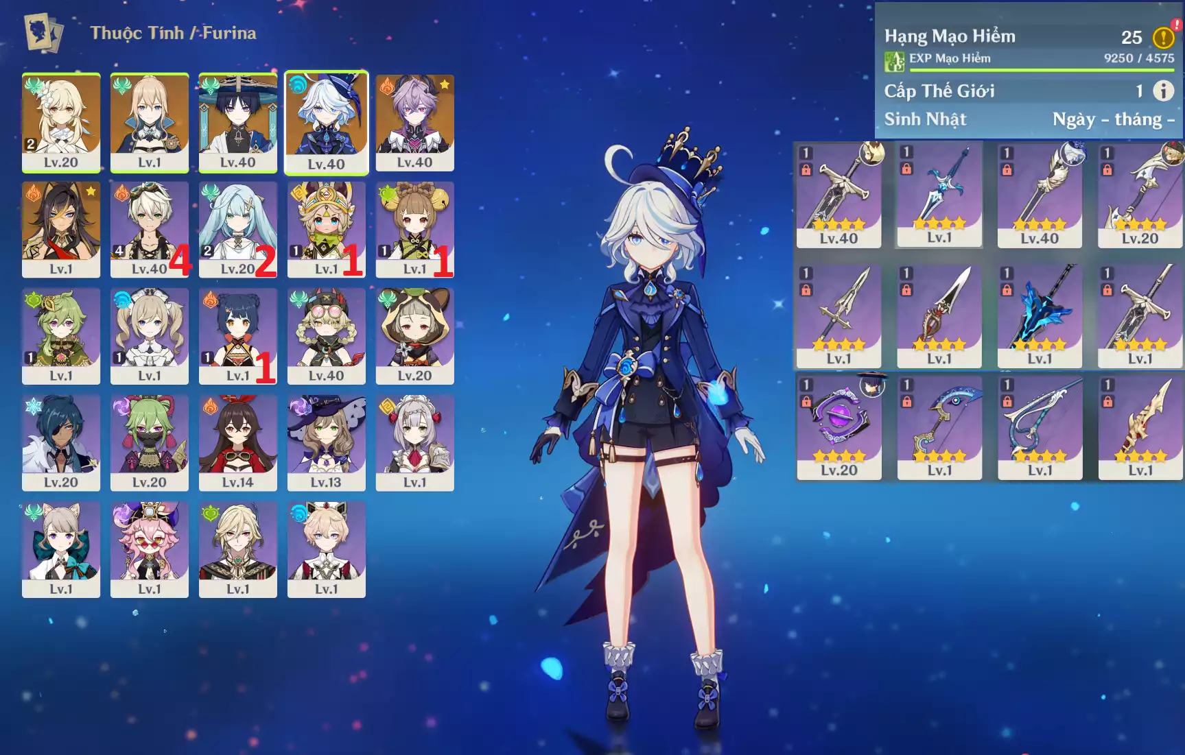 #361008 799,000đ 799,000đ AR level 25 Khu Vực asia Tướng 5* 5 Ar25 : Furina + Durin + Scaramouche + Dehya + Jean _ banner nhân vật 25/90 ( acc trắng thông tin _ chưa set email + sinh nhật ) _ map zin 99% Tướng : 5 Vũ khí : 0 Chi tiết