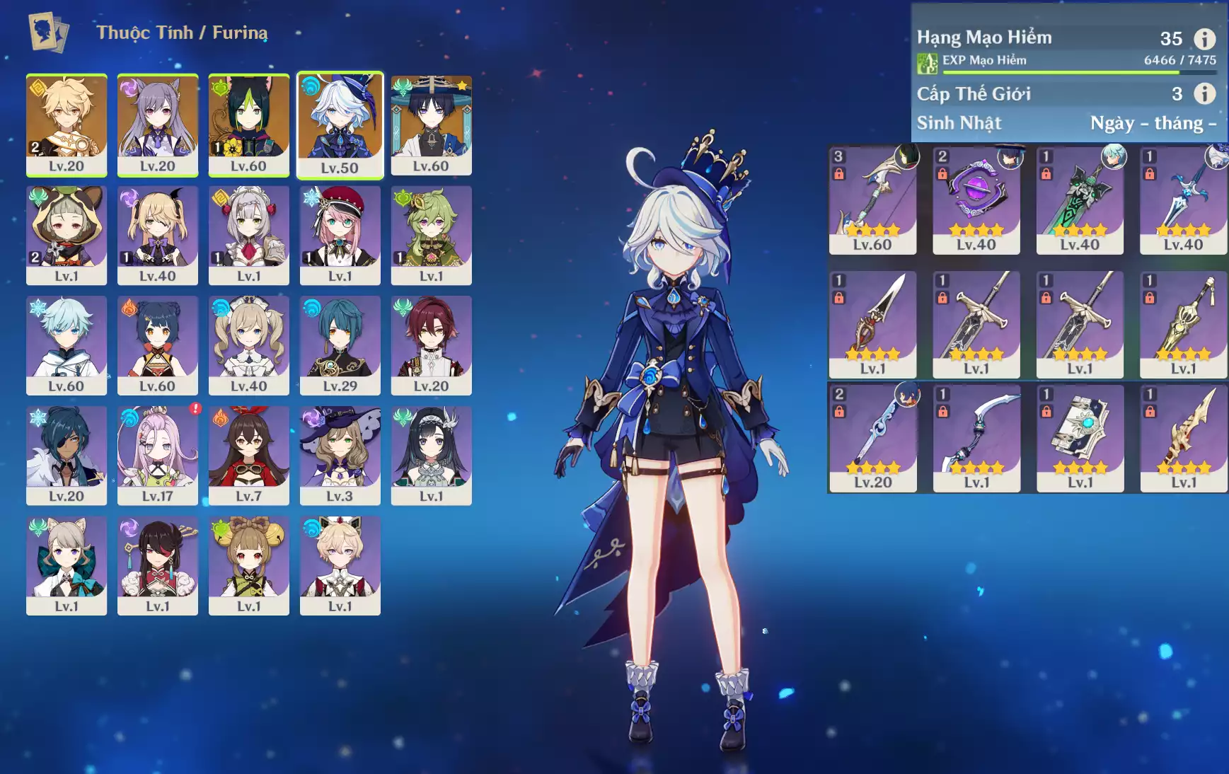 #361009 550,000đ 550,000đ AR level 35 Khu Vực asia Tướng 5* 5 Ar35 : Furina + Scaramouche + TighnariC1 + Keqing _ banner nhân vật ĐÃ LỆCH 40/90 lần ( acc trắng thông tin _ chưa set email + sinh nhật ) _ map zin 99% Tướng : 5 Vũ khí : 0 Chi tiết