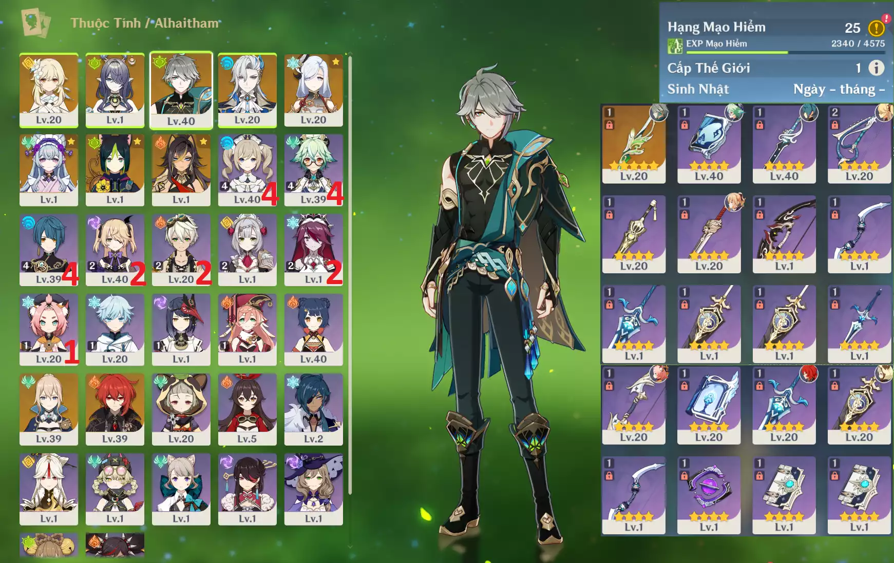 #361027 1,500,000đ 1,500,000đ AR level 25 Khu Vực asia Tướng 5* 4 Ar25: Alhaitham + Trấn ( ALPQ ) + Lauma + Neuvillette + Shenhe + Tighnari + Mizuki + Dehya _ banner nhân vật 20/90 ( acc trắng thông tin _ chưa set email + sinh nhật ) _ map zin 99% Tướng : 4 Vũ khí : 1 Chi tiết