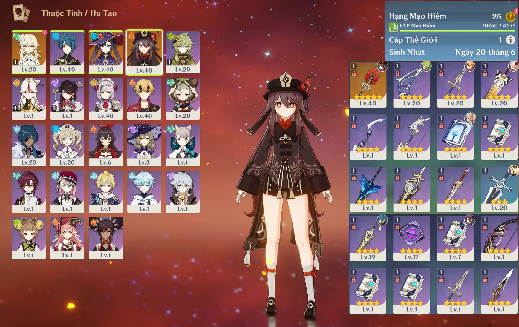 #361035 699,000đ 699,000đ AR level 25 Khu Vực asia Tướng 5* 3 Ar25 : Hutao + Trấn ( Homa ) + Mona xingqiu _ banner nhân vật 20/90 ( quên user ) _ map zin 99% Tướng : 3 Vũ khí : 1 Chi tiết