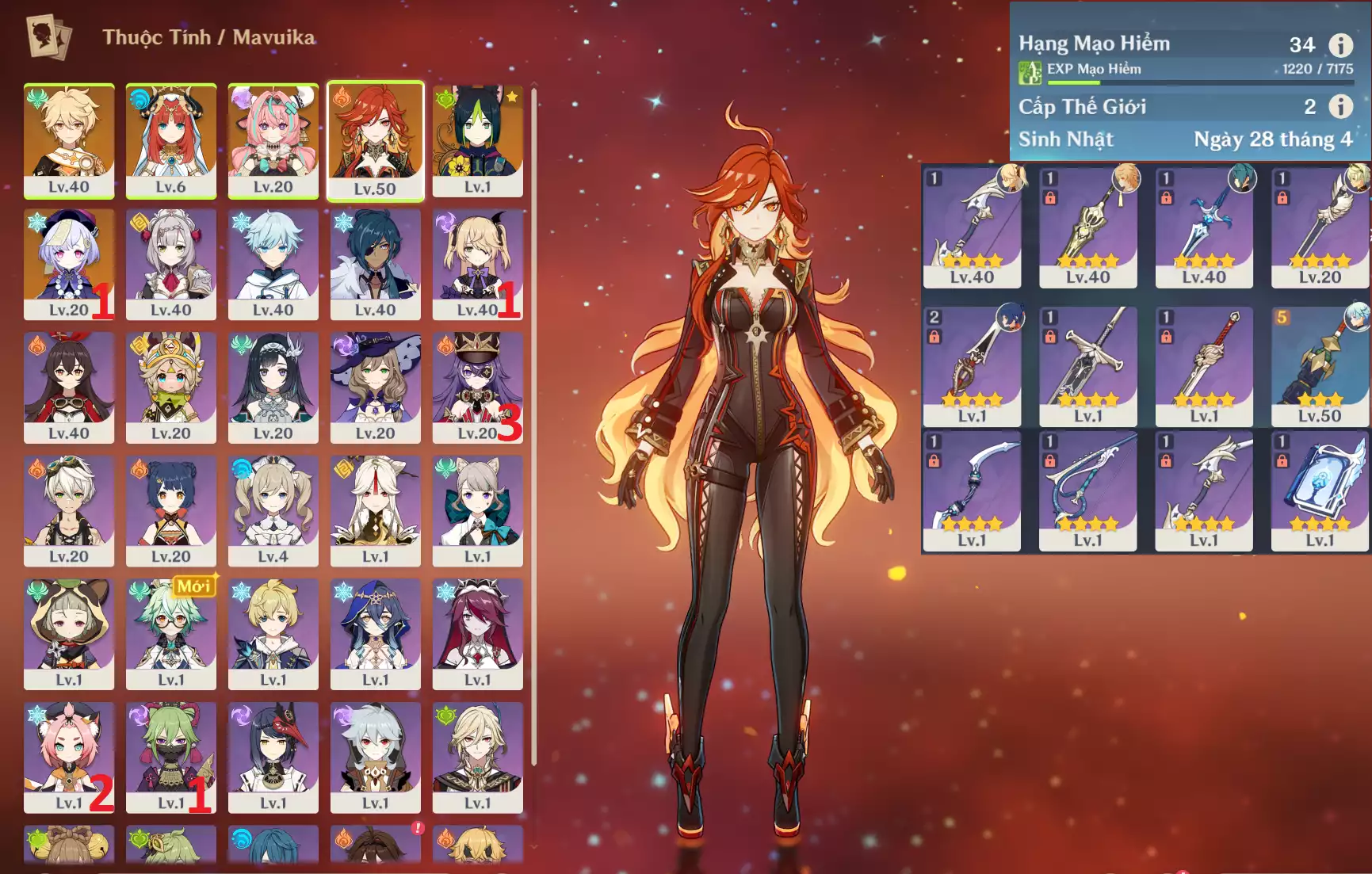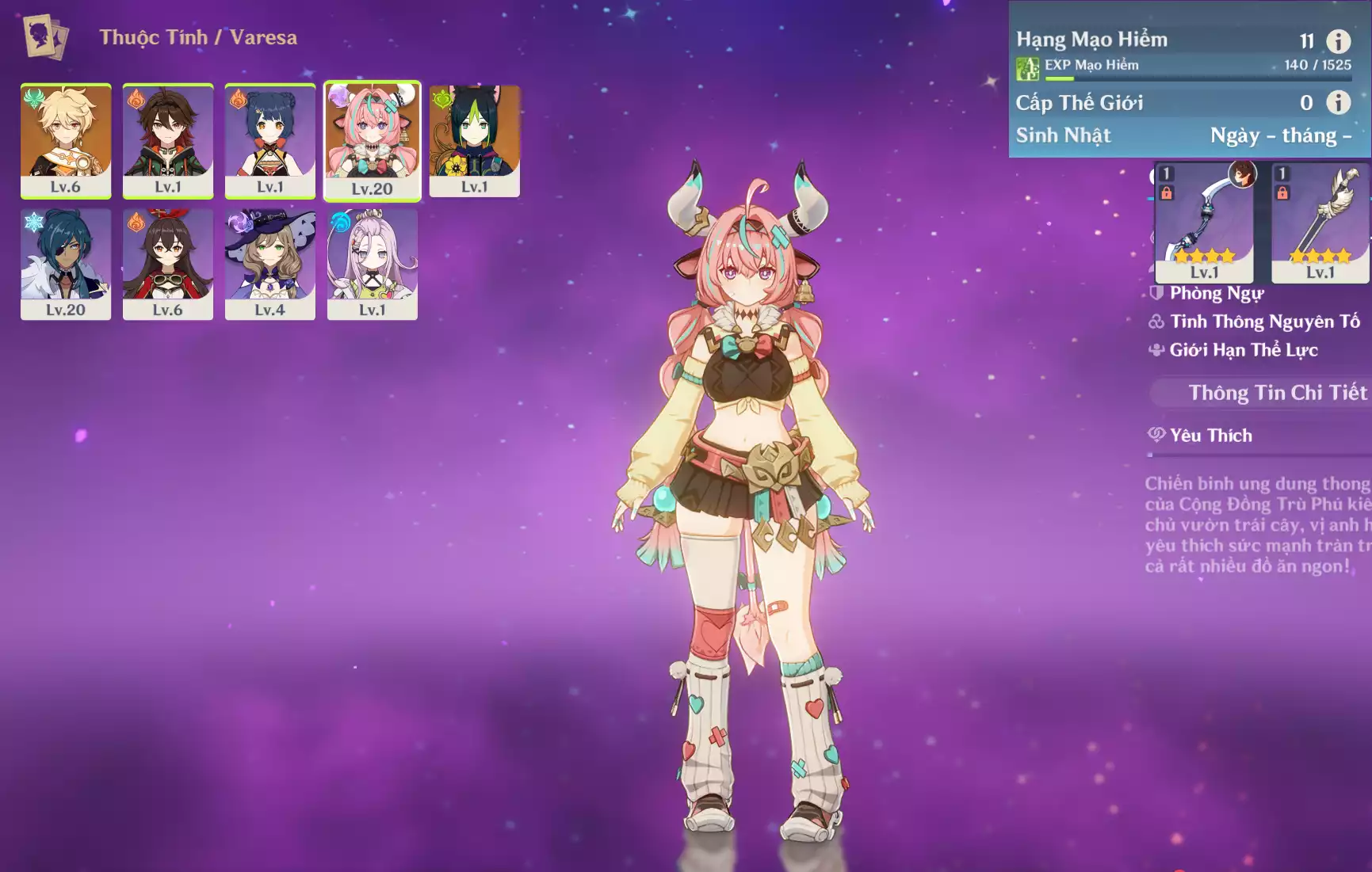 #356534 500,000đ 500,000đ AR level 11 Khu Vực asia Tướng 5* 2 Ar11 : Varesa + Tighnari _ banner nhân vật 30/90 ( chưa set user + sinh nhật ) Tướng : 2 Vũ khí : 0 Chi tiết