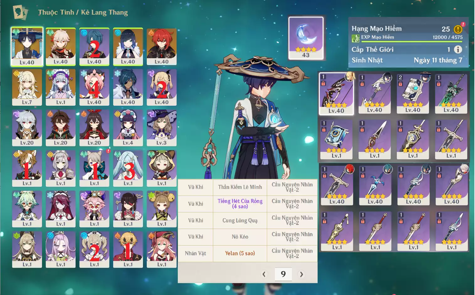 #357099 799,000đ 799,000đ AR level 25 Khu Vực asia Tướng 5* 6 Ar25: Scaramouche ( Kẻ lang thang ) + Yelan + Kazuha + Mizuki Diluc , banner nhân vật 9 trang , chưa set sinh nhật Tướng : 6 Vũ khí : 0 Chi tiết