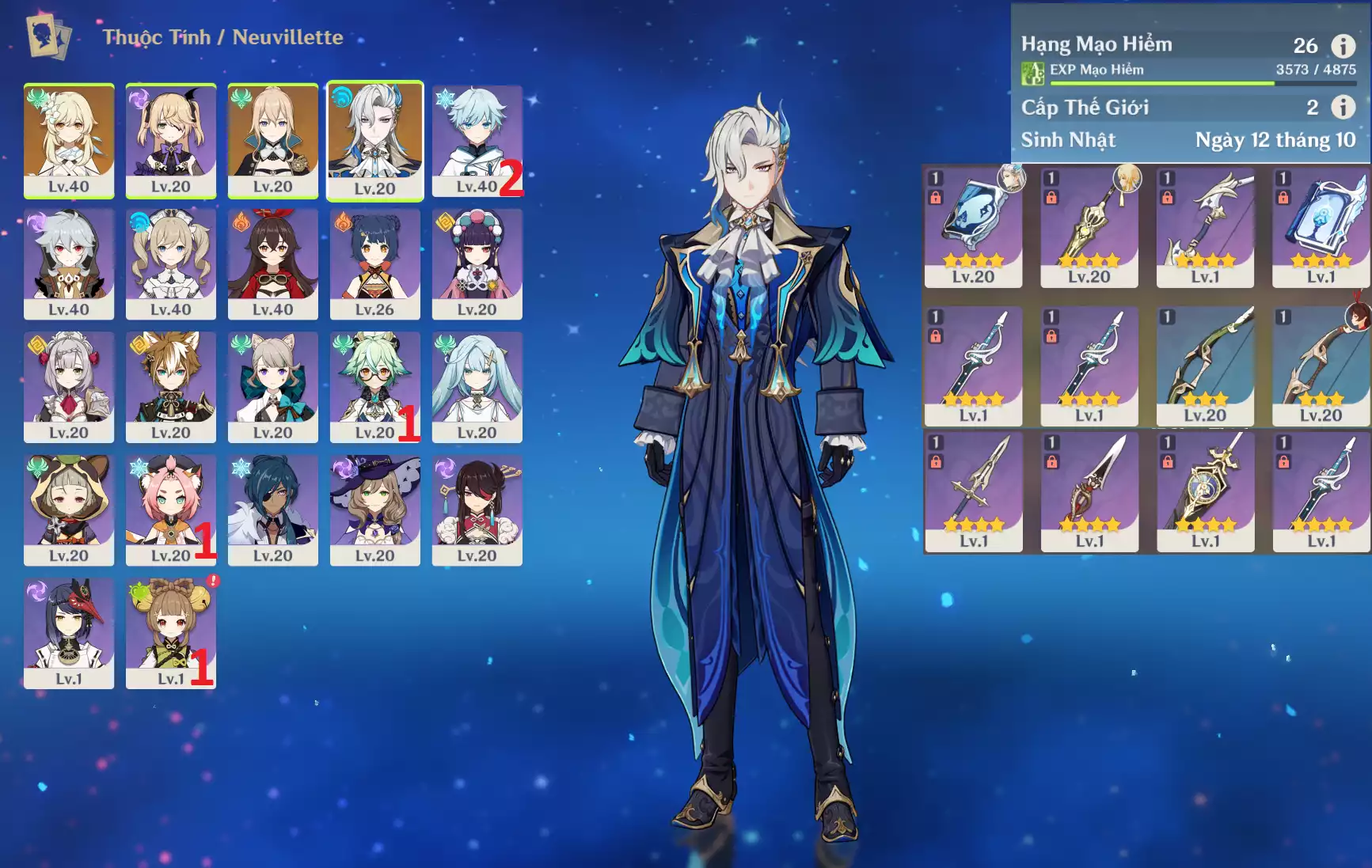 #356988 449,000đ 449,000đ AR level 26 Khu Vực asia Tướng 5* 2 Ar26 : Neuvillette + Jean _ banner nhân vật 20/90 ( chưa set user ) _ map zin 99% Tướng : 2 Vũ khí : 0 Chi tiết