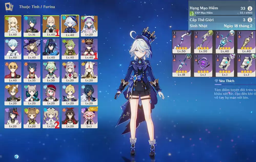7 limted trong top mạnh nhất game Ar35 : Mavuika + Citlali + Furina + Ineffa + Arlecchino + EmilieVaresa + Emilie*ĐTTP _ banner nhân vật 7 trang ( chưa set user ) - acc ép lever