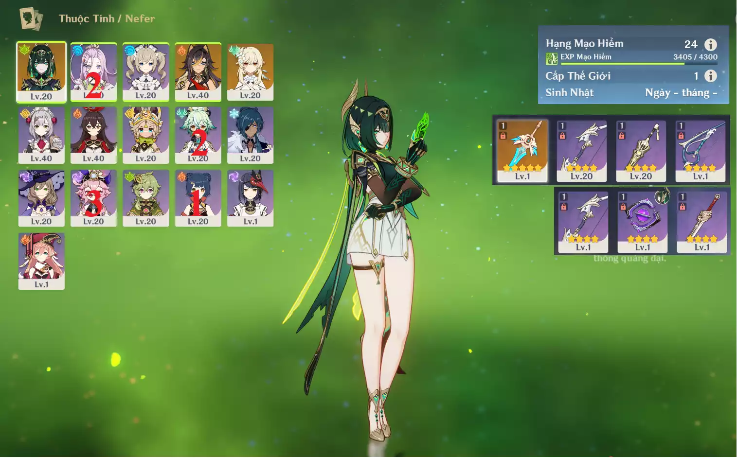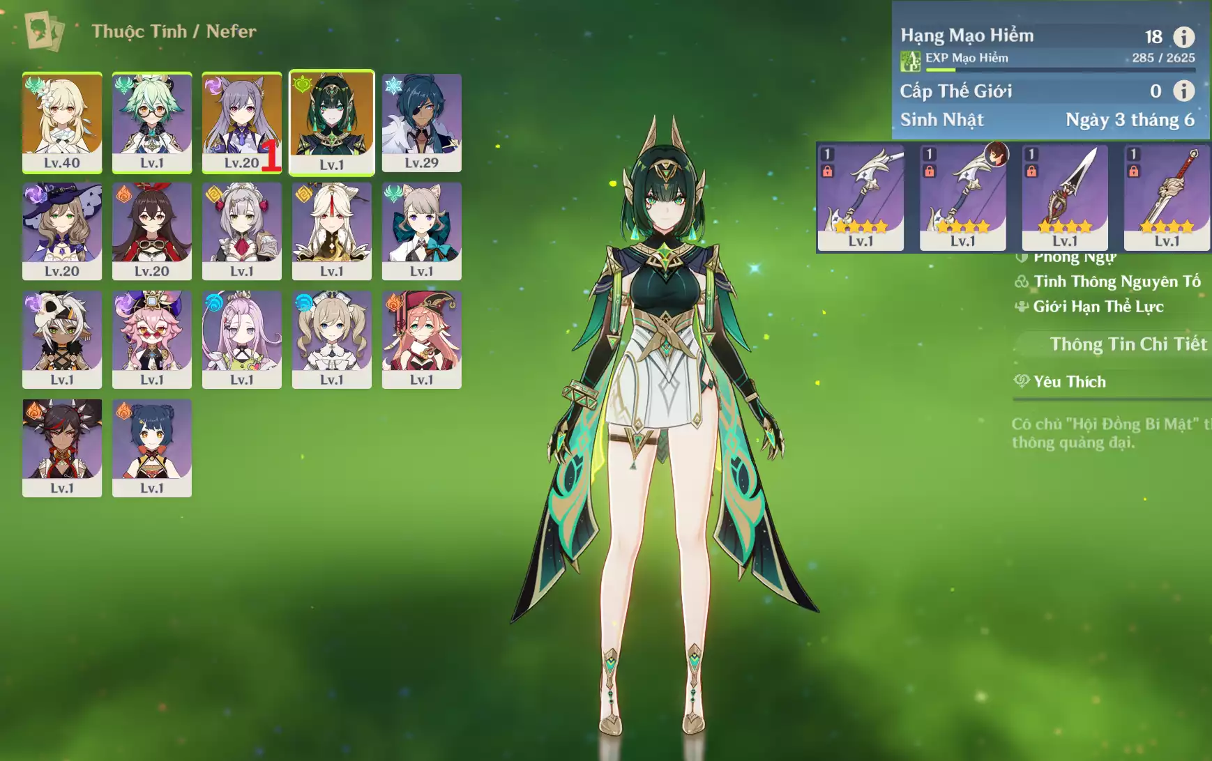 Ar10 : Flins + Neuvilette + Nahida cung mệnh 1 + Scaramouche cung mệnh 1 + Tighnari + QiQi_ banner nhân vật ĐÃ LỆCH 10/90 ( acc trắng thông tin _ chưa set mail + sinh nhật )