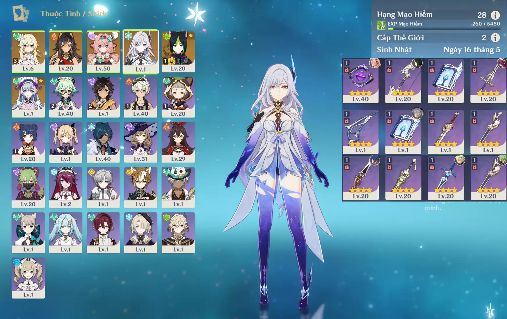 Ar28: Skirk + Flins XSTK* + Mizuki Tighnari main NAM + 4 roll hồng, chưa set user