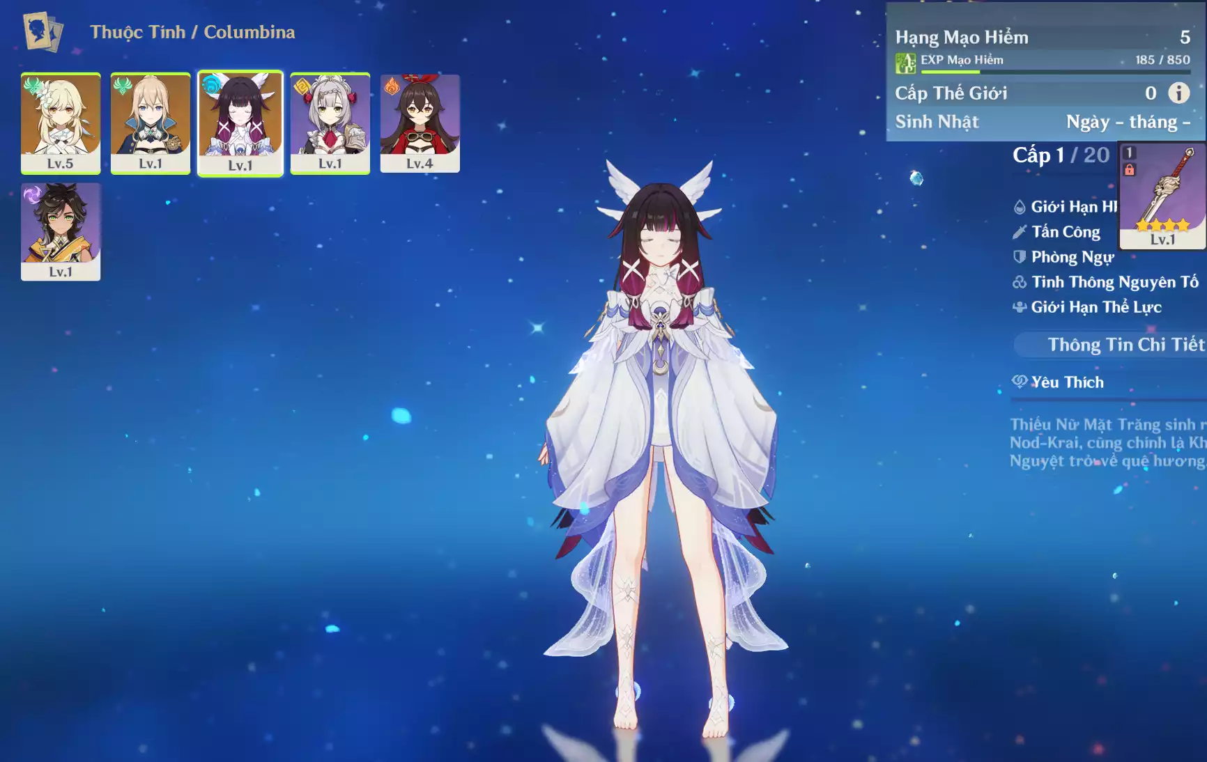 #360635 550,000đ 550,000đ AR level 5 Khu Vực asia Tướng 5* 1 Ar5 : Nguyệt thần Columbina _ banner nhân vật 2 trang ( chưa set user + sinh nhật ) Tướng : 1 Vũ khí : 0 Chi tiết
