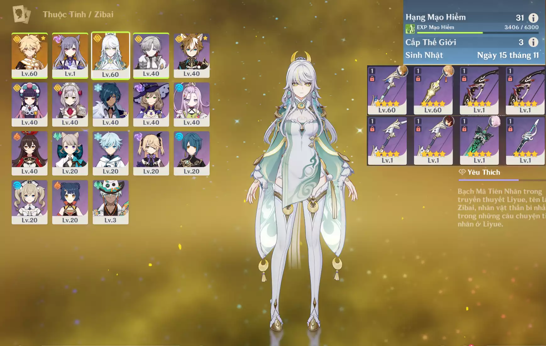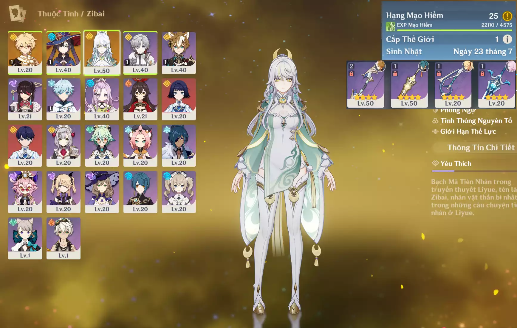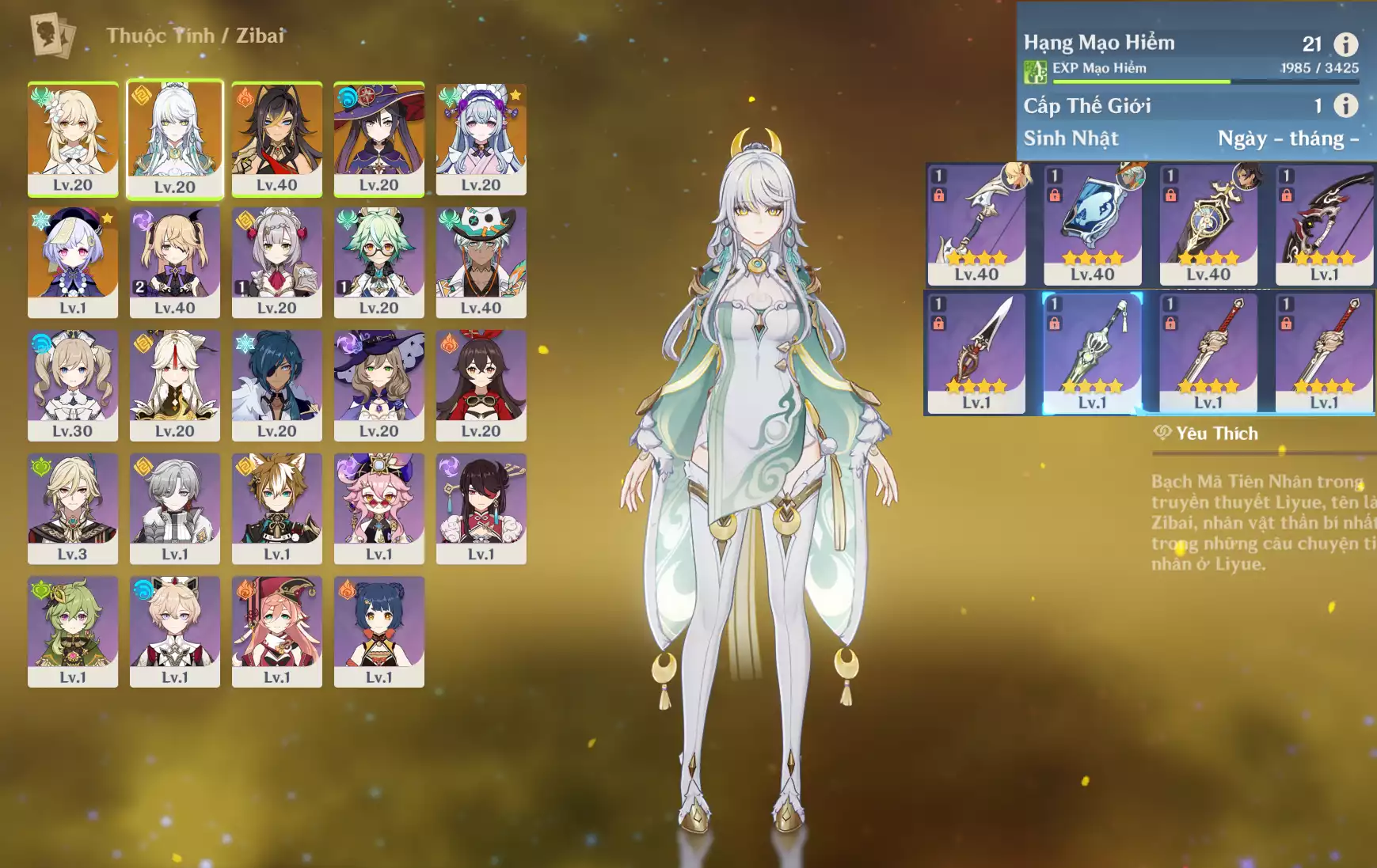 #360647 400,000đ 400,000đ AR level 21 Khu Vực asia Tướng 5* 5 Ar21 : Top1 dps hệ nham Zibai + QiQi + Dehya + Mona + Mizuki _ banner nhân vật 2 trang ( chưa set user + sinh nhật ) Tướng : 5 Vũ khí : 0 Chi tiết