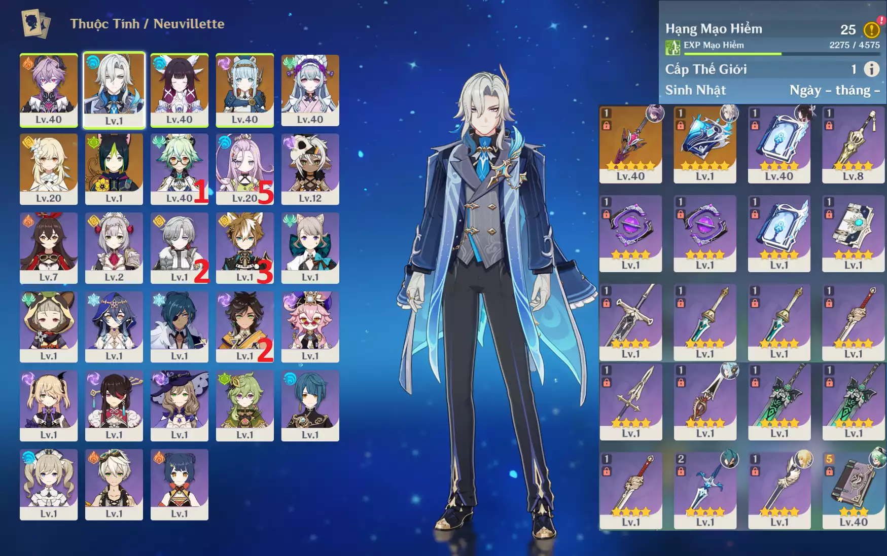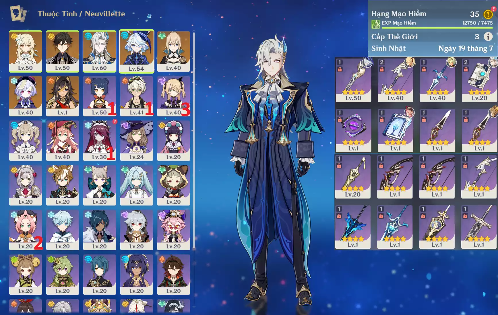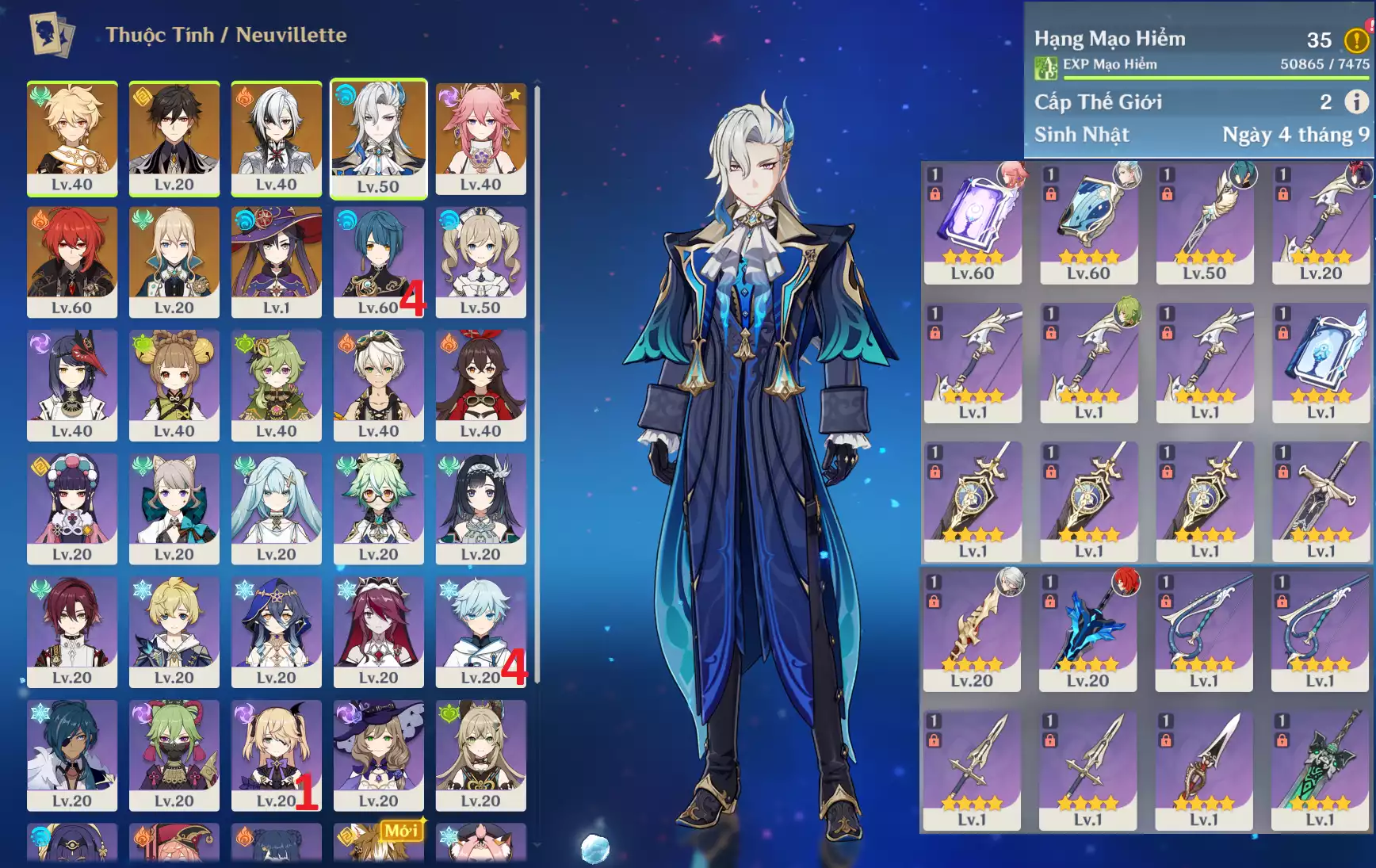 #359883 699,000đ 699,000đ AR level 5 Khu Vực asia Tướng 5* 4 Ar5 : Neuvillette + Xiao + Mona _ banner nhân vật 1 trang ( chưa set user + sinh nhật ) Tướng : 4 Vũ khí : 0 Chi tiết