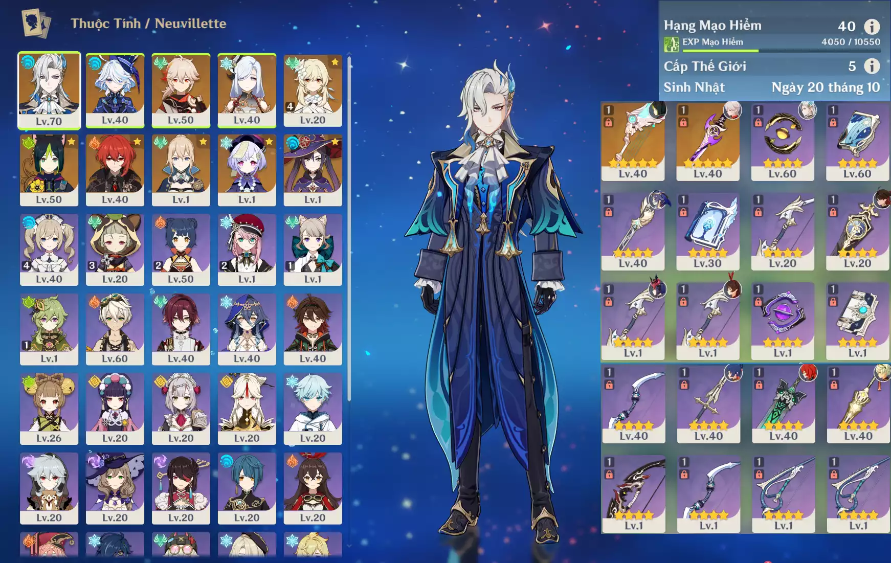 #360536 899,000đ 899,000đ AR level 40 Khu Vực asia Tướng 5* 9 Combo siêu mạnh : Neuvillette + Furina + Kazuha*ASĐSM + Shenhe + Tighnari*CTK + Mona + Jean _ banner nhân vật 3 trang ( chưa set user ) _ map zin gần 90% Tướng : 9 Vũ khí : 2 Chi tiết